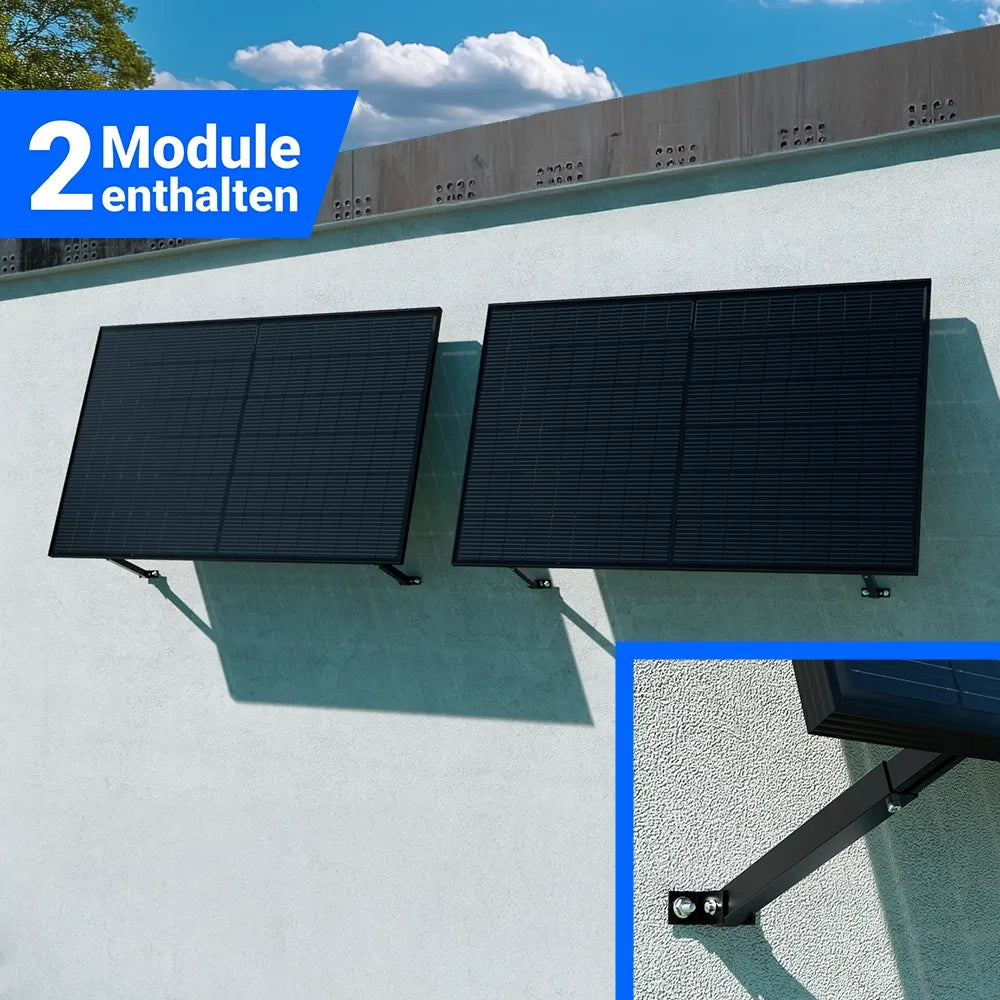 1000W Balkonkraftwerk mit Speicher - 2x Jolywood 500W JW-HD108N-R2 Bifazial Glas-Glas Full Black & Anker Solix Solarbank 2 Pro