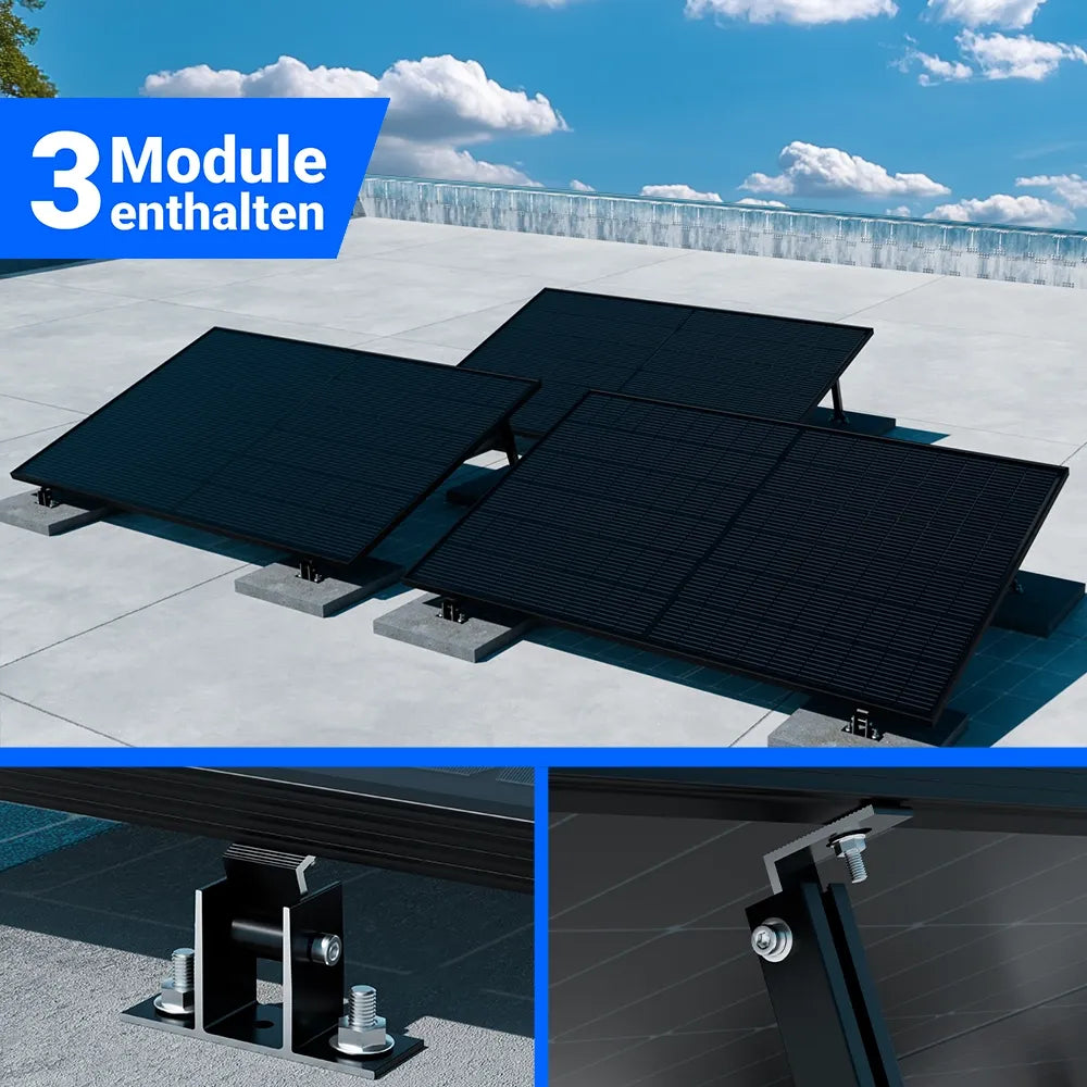Flachdach- / Wandhalterung: 15-30° Grad verstellbar, schwarz