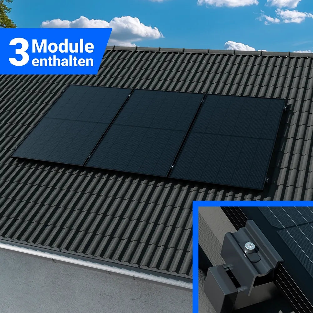 1500W Balkonkraftwerk mit Speicher - 3x Jolywood 500W JW-HD108N-R2 Bifazial Glas-Glas Full Black & Anker Solix Solarbank 2 Pro