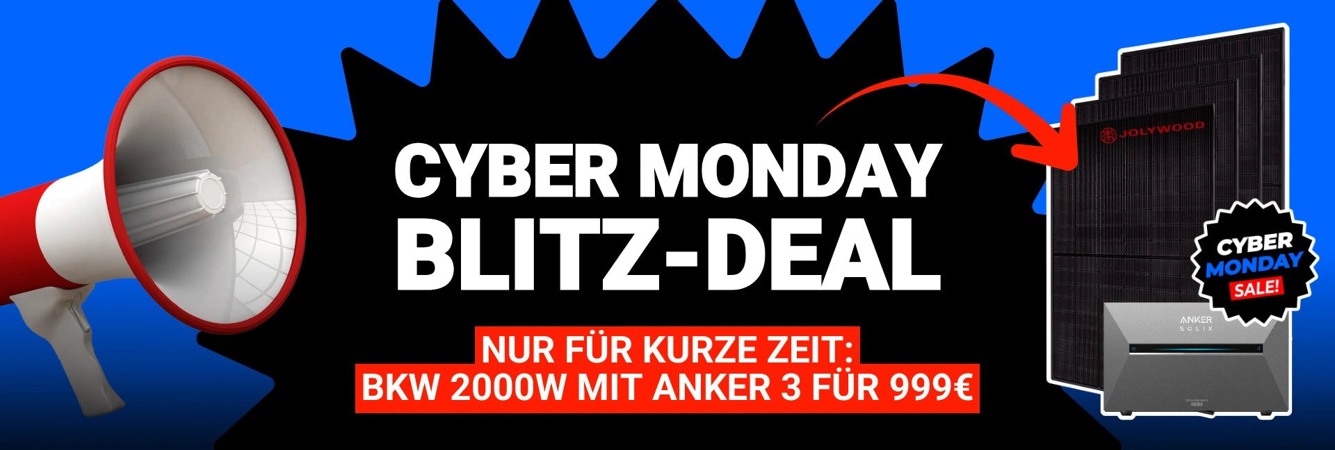 2000W Balkonkraftwerk mit Speicher - 4x Jolywood 500W Full Black bifazial & Anker Solix Solarbank 3 Pro