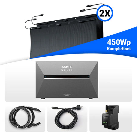450W Balkonkraftwerk – solago mit flexiblen Solarmodulen 2x225W Set mit Speicheroption