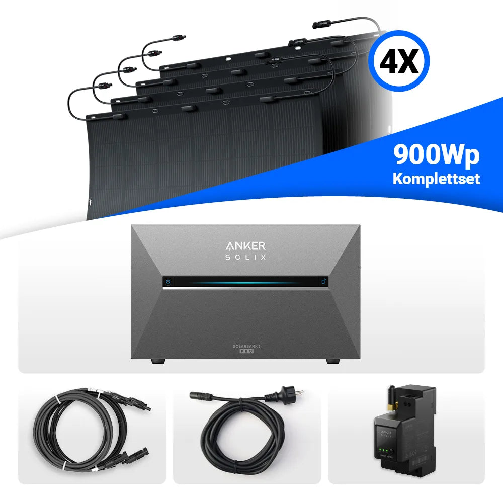 900W Balkonkraftwerk – solago mit flexiblen Solarmodulen 4x225W Set mit Speicheroption