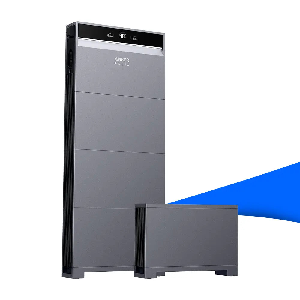 - Ab 4 Speichermodulen ist ein zusätzlicher Anker X1 Bodensockel, ein Anker X1 Kabelzubehör für zweite Batteriereihe und ein Anker X1 Top enthalten