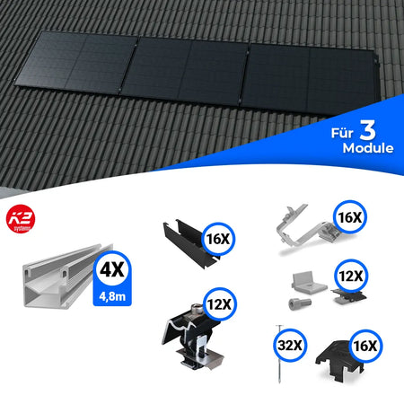 K2 Systems Quermontage Schrägdach Kreuzverbund Montageset für 3 Module