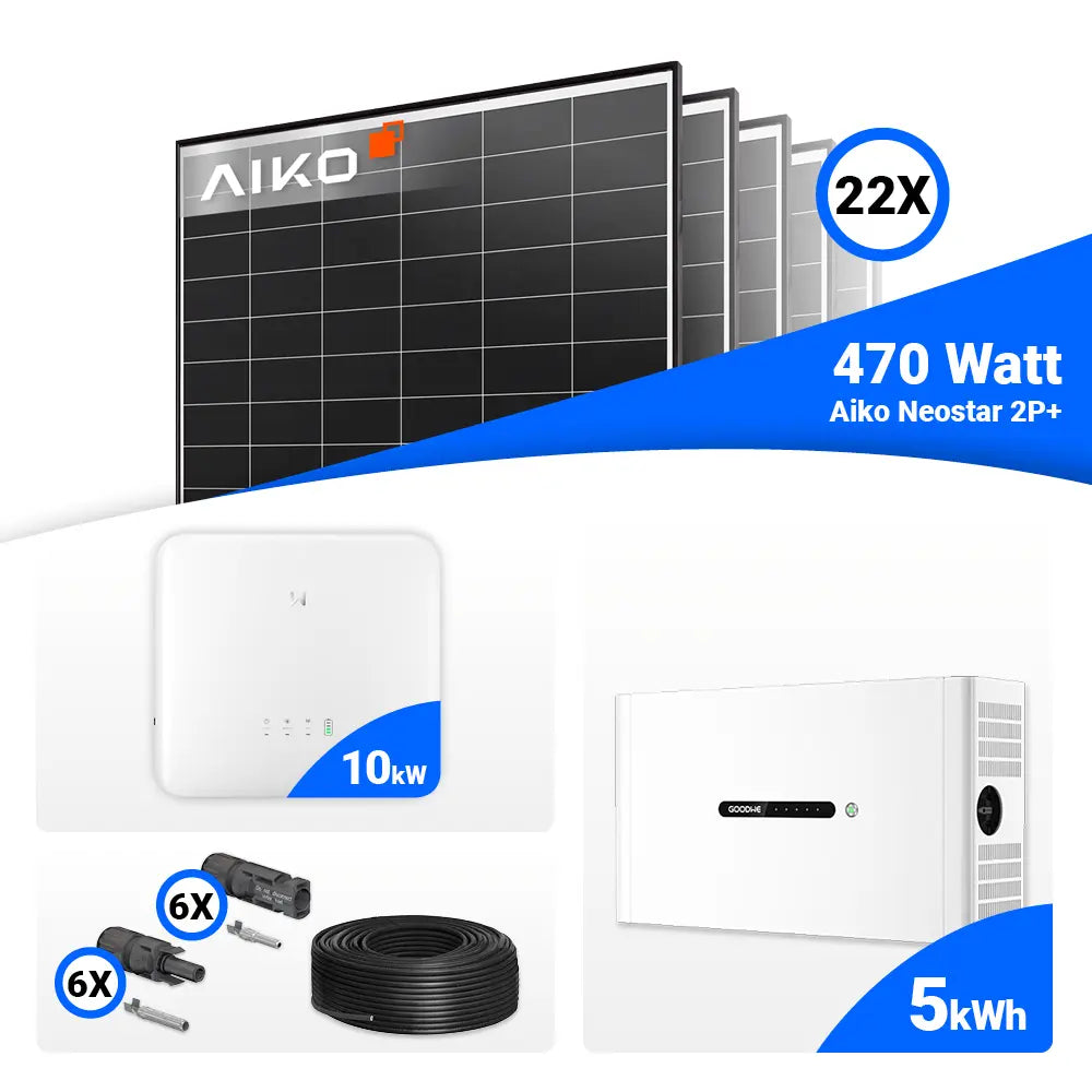 PV Komplettset 10 kWp – 22x AIKO 470W Black Frame & GoodWe GW10K-ET-20 mit Speicheroption