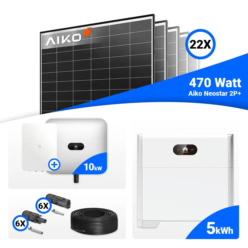 PV Komplettset 10 kWp – 22x AIKO 470W Black Frame & Huawei SUN2000-10KTL-M1 mit Speicheroption