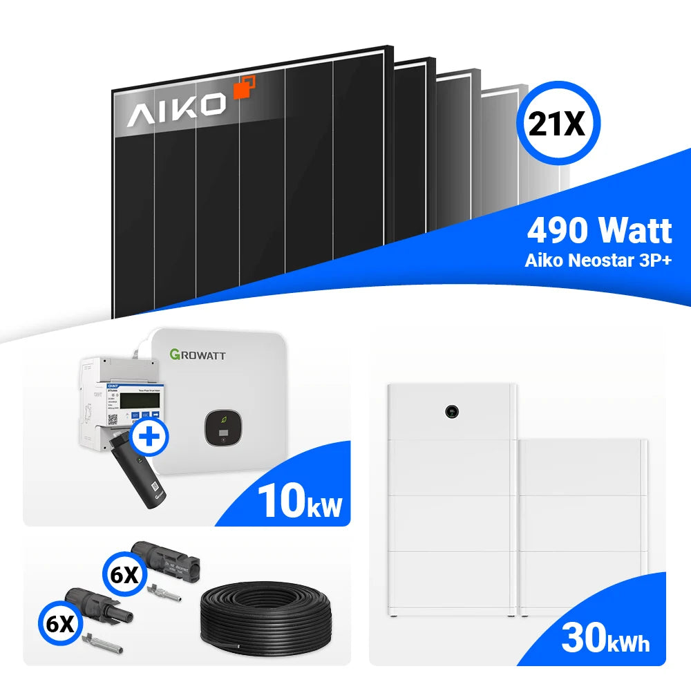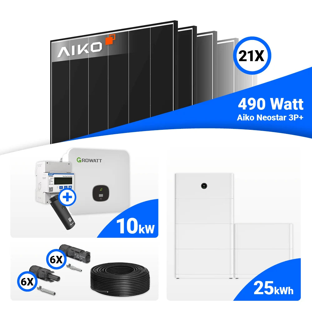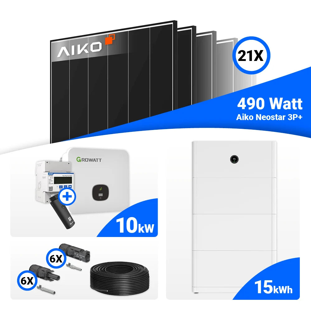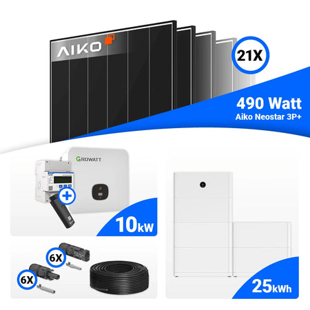 PV Komplettset 10 kWp – 21x AIKO 490W Black Frame & Growatt MOD 10KTL3-XH BP mit Speicheroption