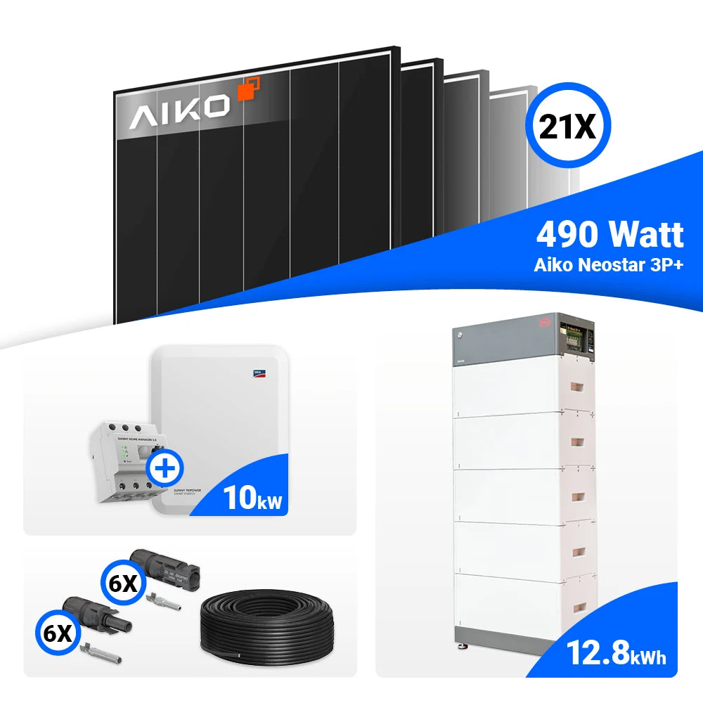 PV Komplettset 10 kWp – 21x AIKO 490W Black Frame & SMA STP10.0-3SE-40 mit Speicheroption