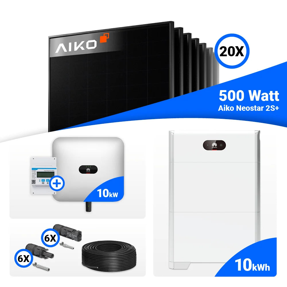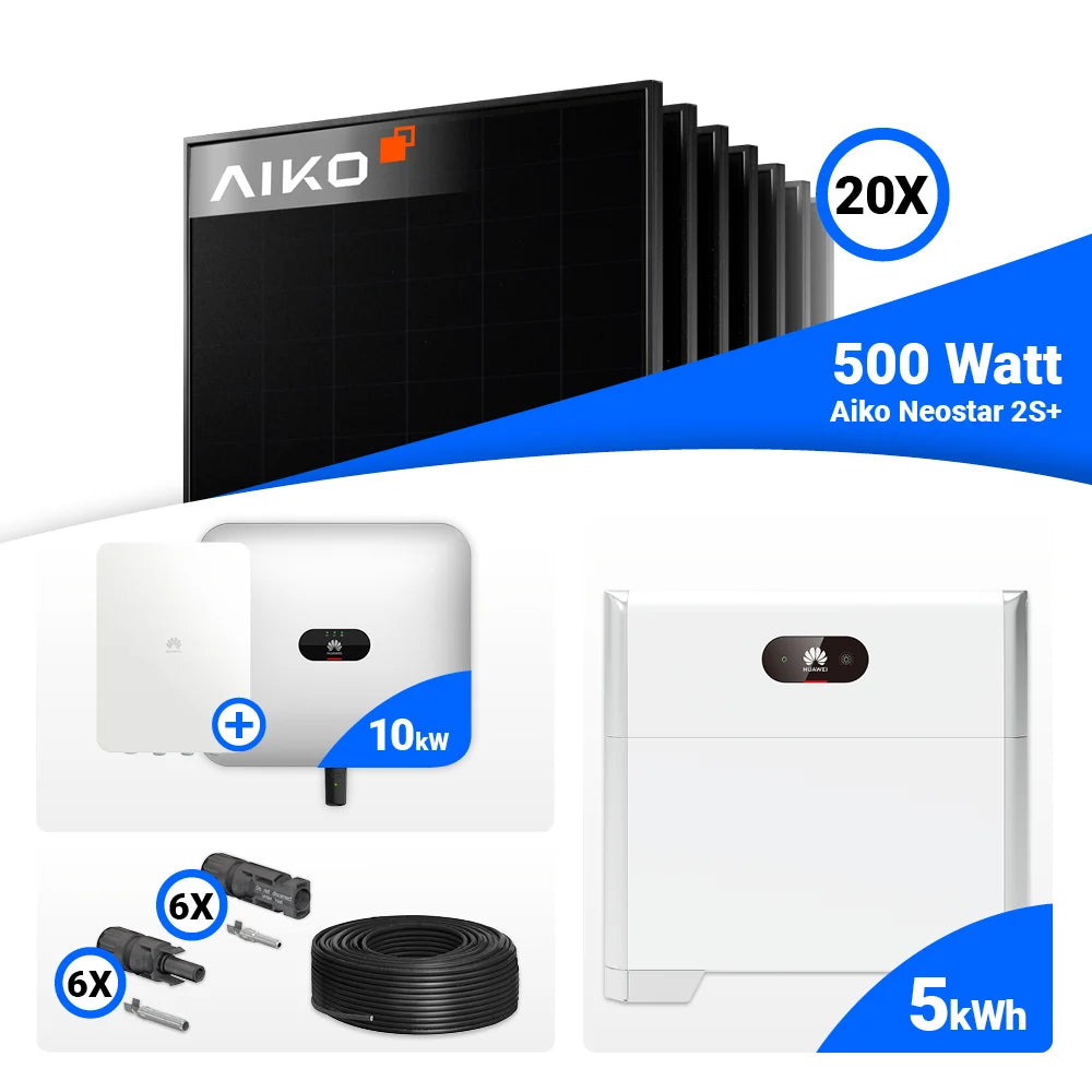 PV Komplettset 10 kWp – 20x AIKO 500W Full Black & Huawei SUN2000-10KTL-M1 mit Speicheroption