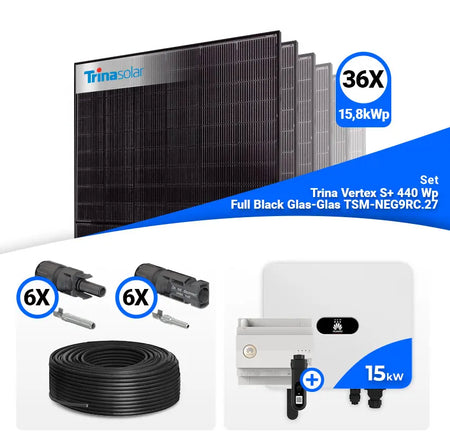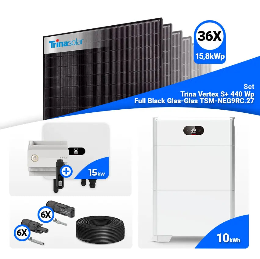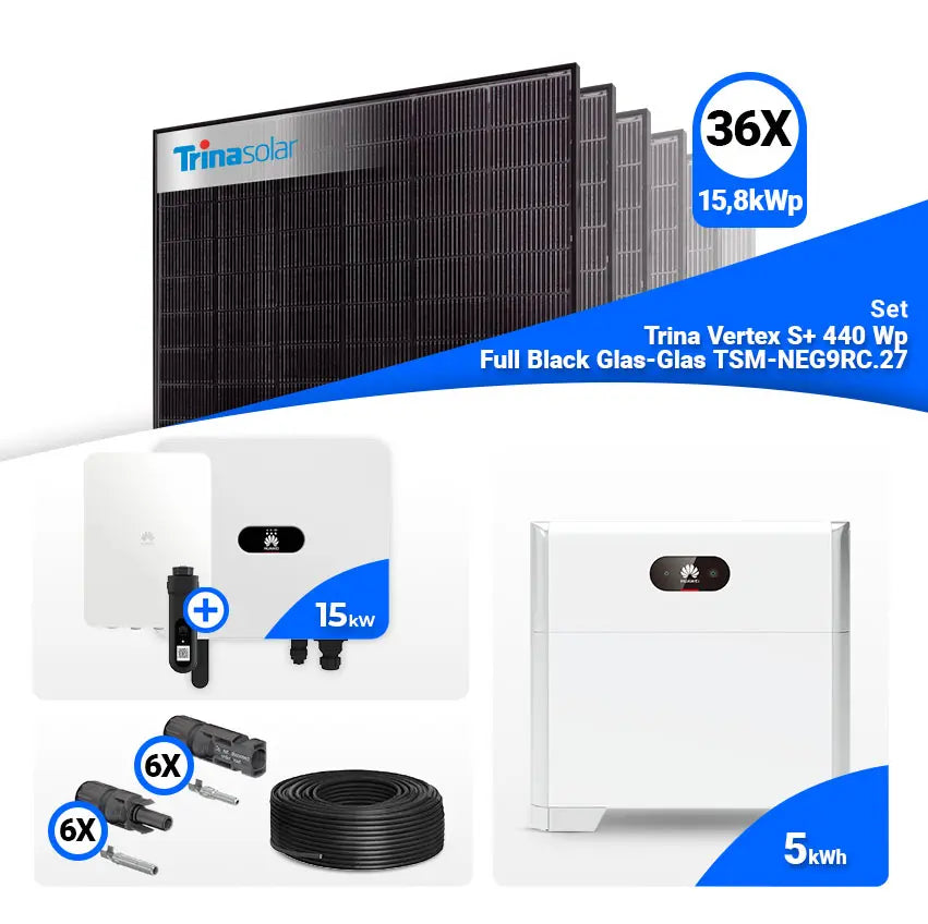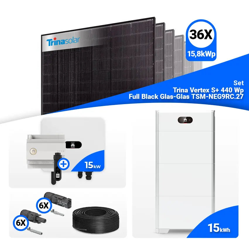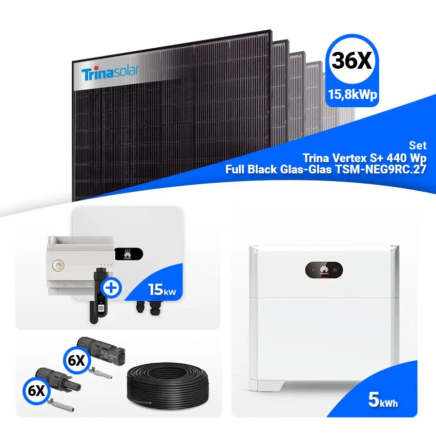 PV Komplettset 15 kWp – 36x Trina 440W Full Black Bifazial & Huawei SUN2000-15K-MB0 mit Speicheroption
