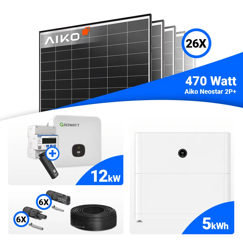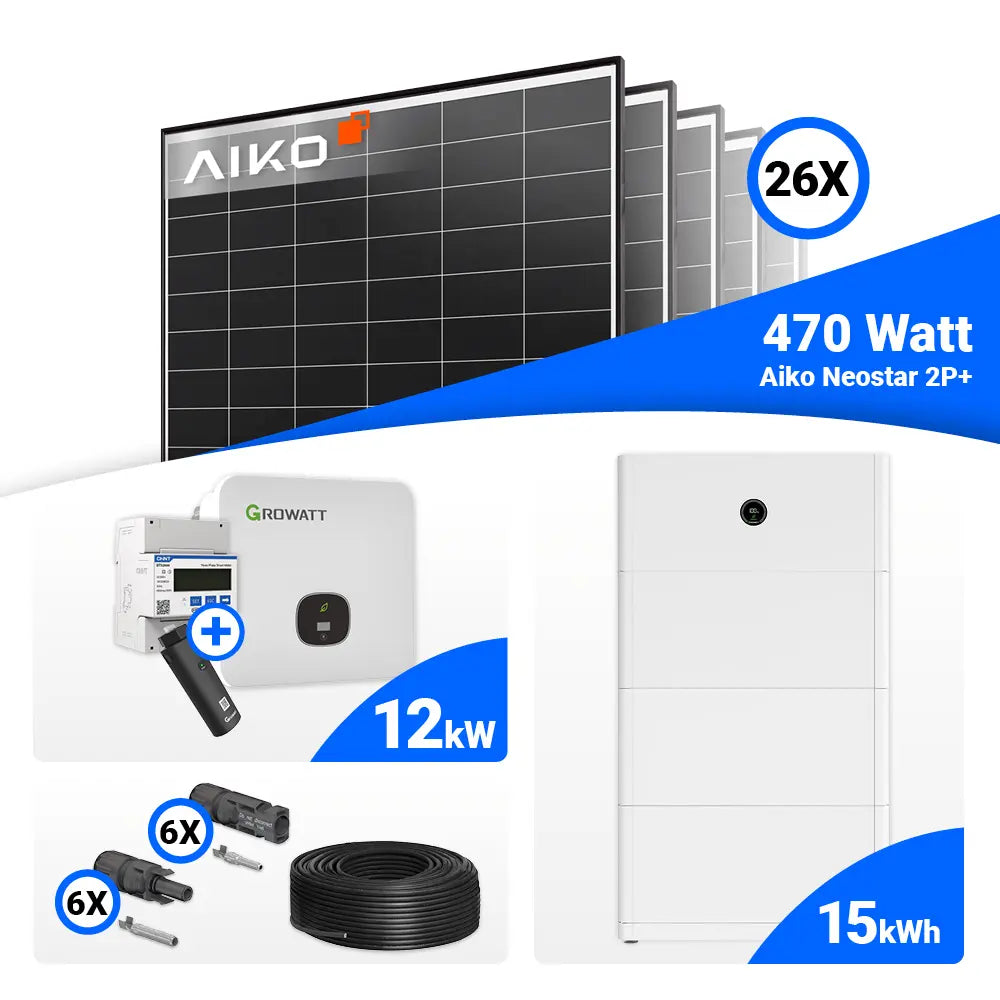PV Komplettset 12 kWp – 26x AIKO 470W Black Frame & Growatt MOD 12KTL3-HU mit Speicheroption