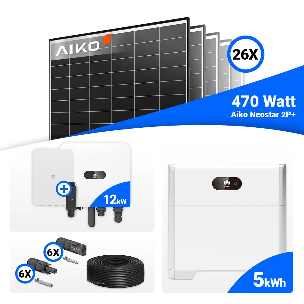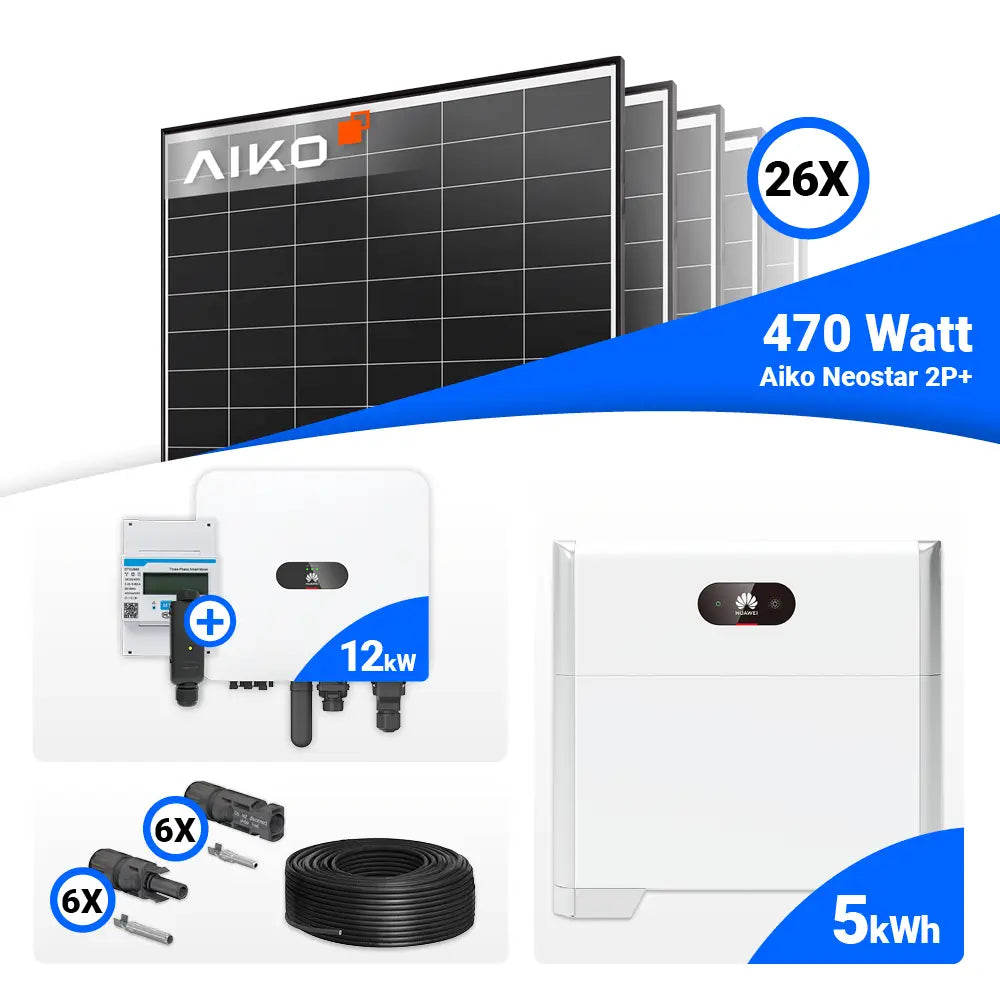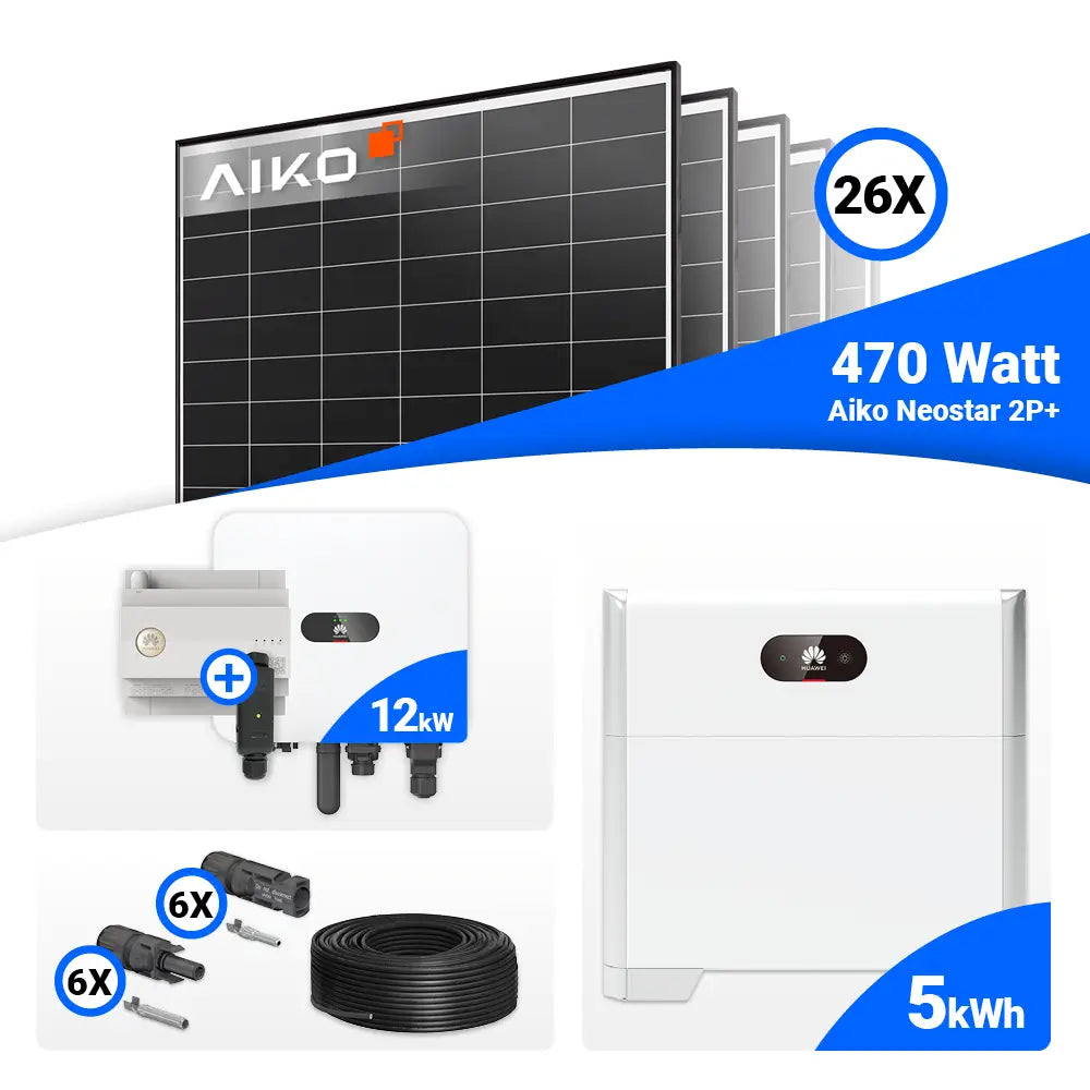 PV Komplettset 12 kWp – 26x AIKO 470W Black Frame & Huawei MAP0 mit Speicheroption