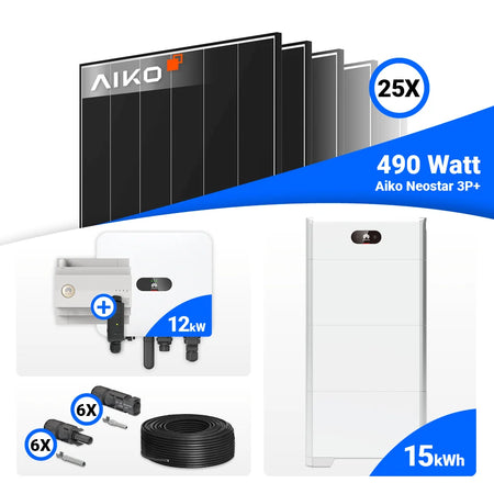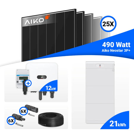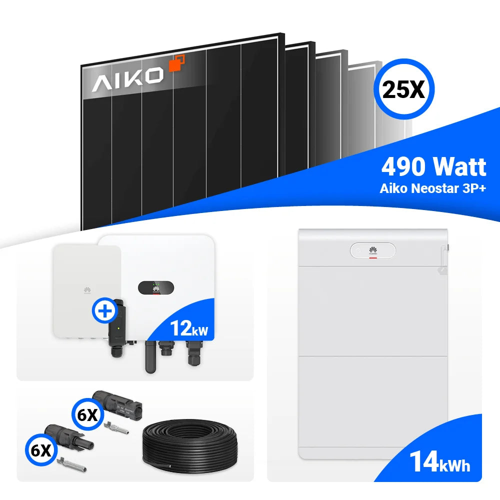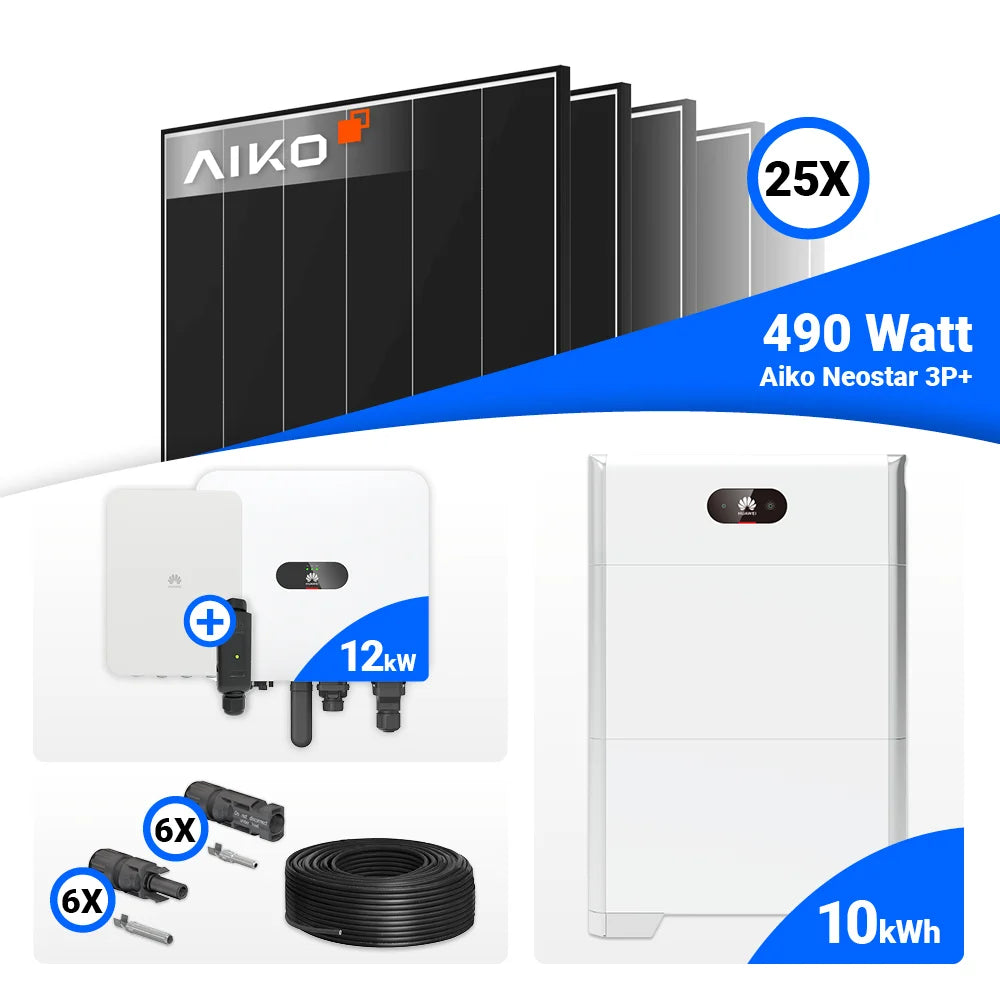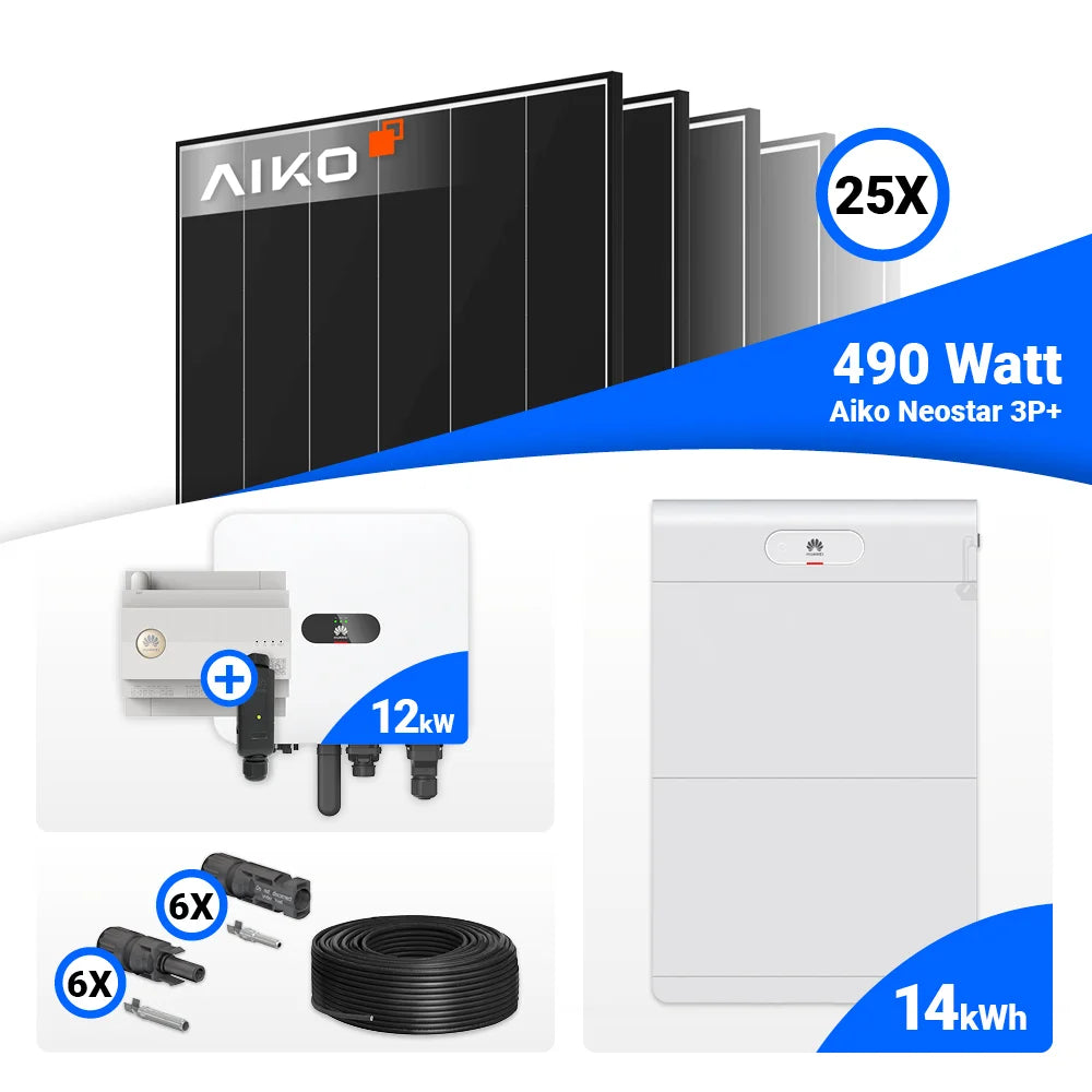 PV Komplettset 12 kWp – 25x AIKO 490W Black Frame & Huawei MAP0 mit Speicheroption