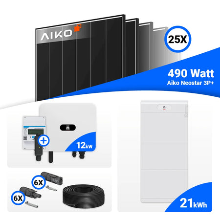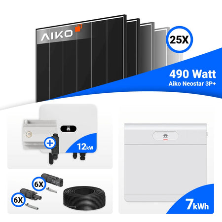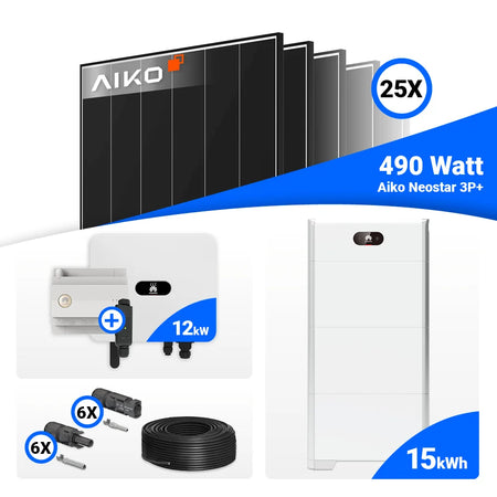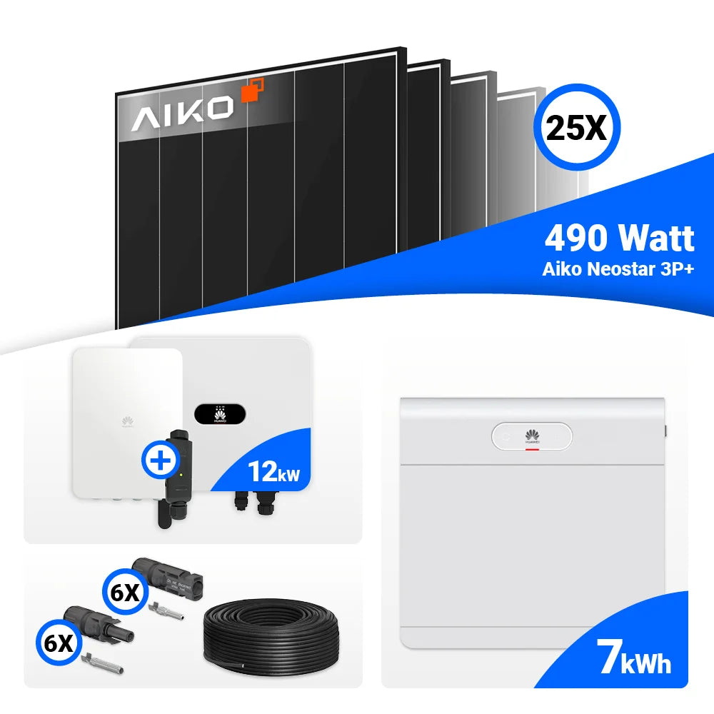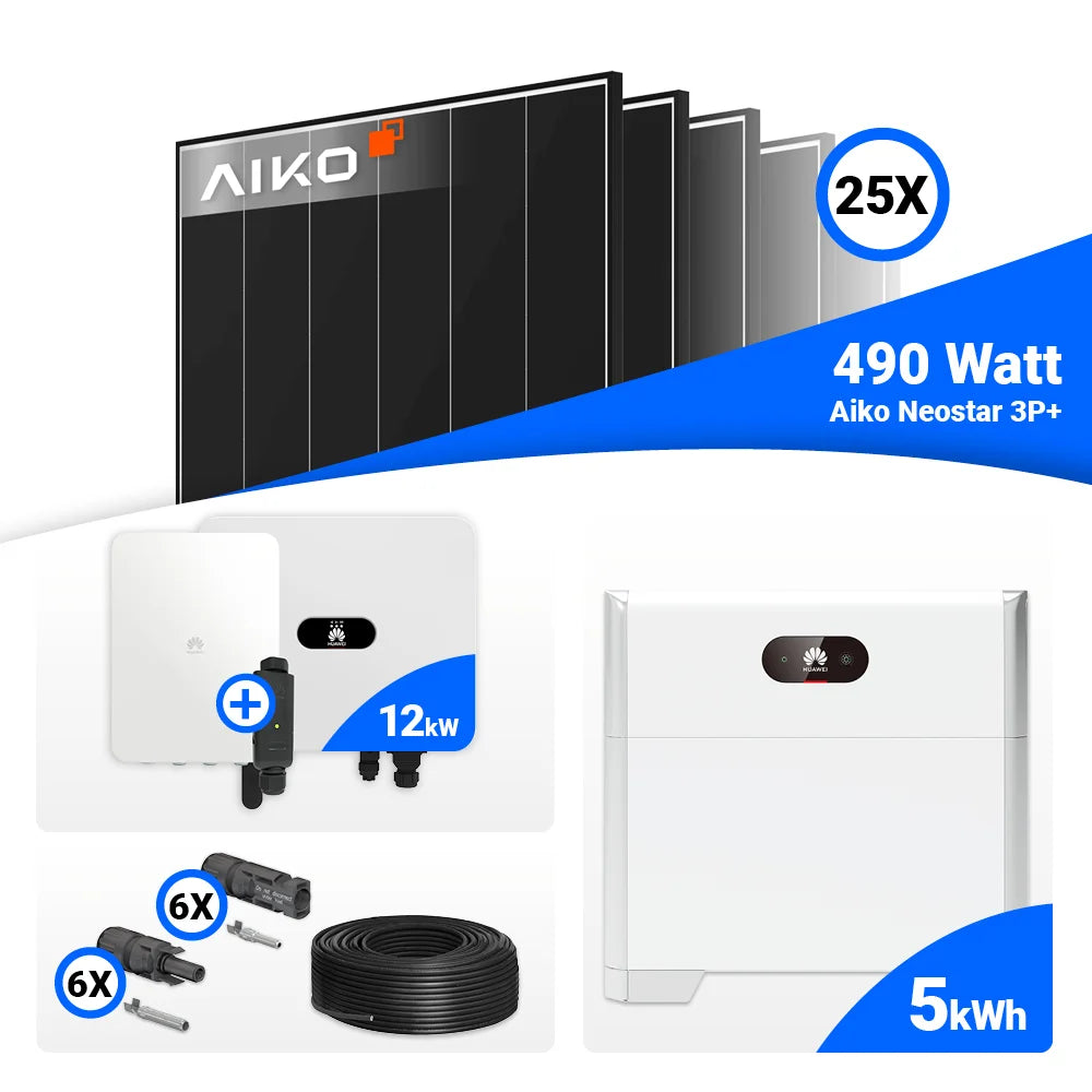 PV Komplettset 12 kWp – 25x AIKO 490W Black Frame & Huawei SUN2000-12K-MB0 mit Speicheroption