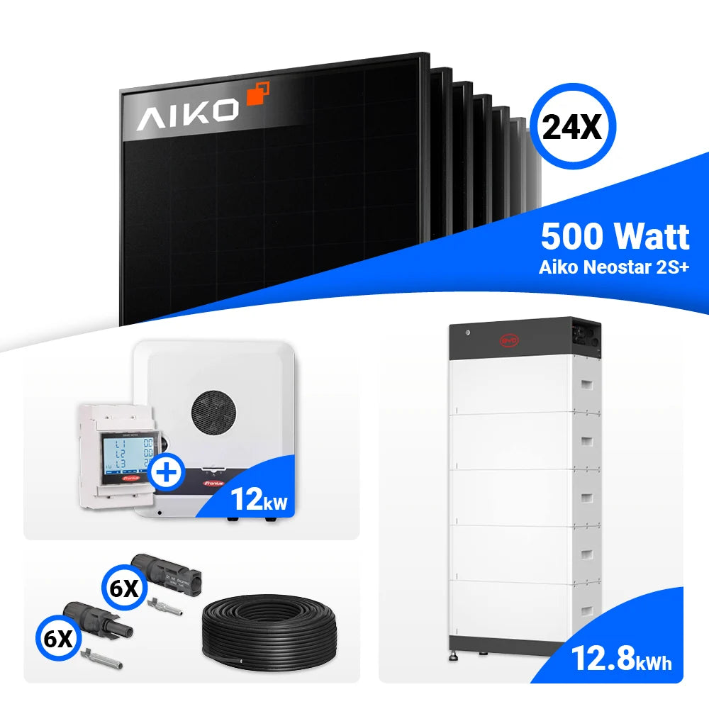 PV Komplettset 12 kWp – 24x AIKO 500W Full Black & Fronius SYMO-GEN24-12.0-PLUS-SC mit Speicheroption