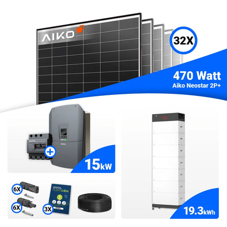 PV Komplettset 15 kWp – 32x AIKO 470W Black Frame & Kostal G3 L Plenticore mit Speicheroption