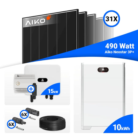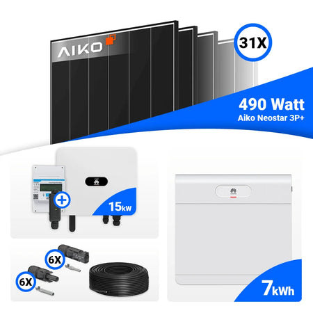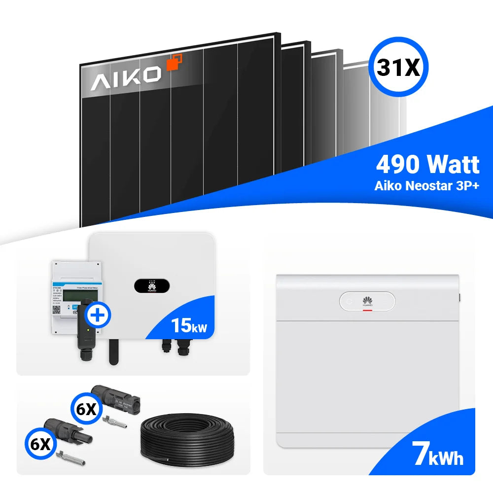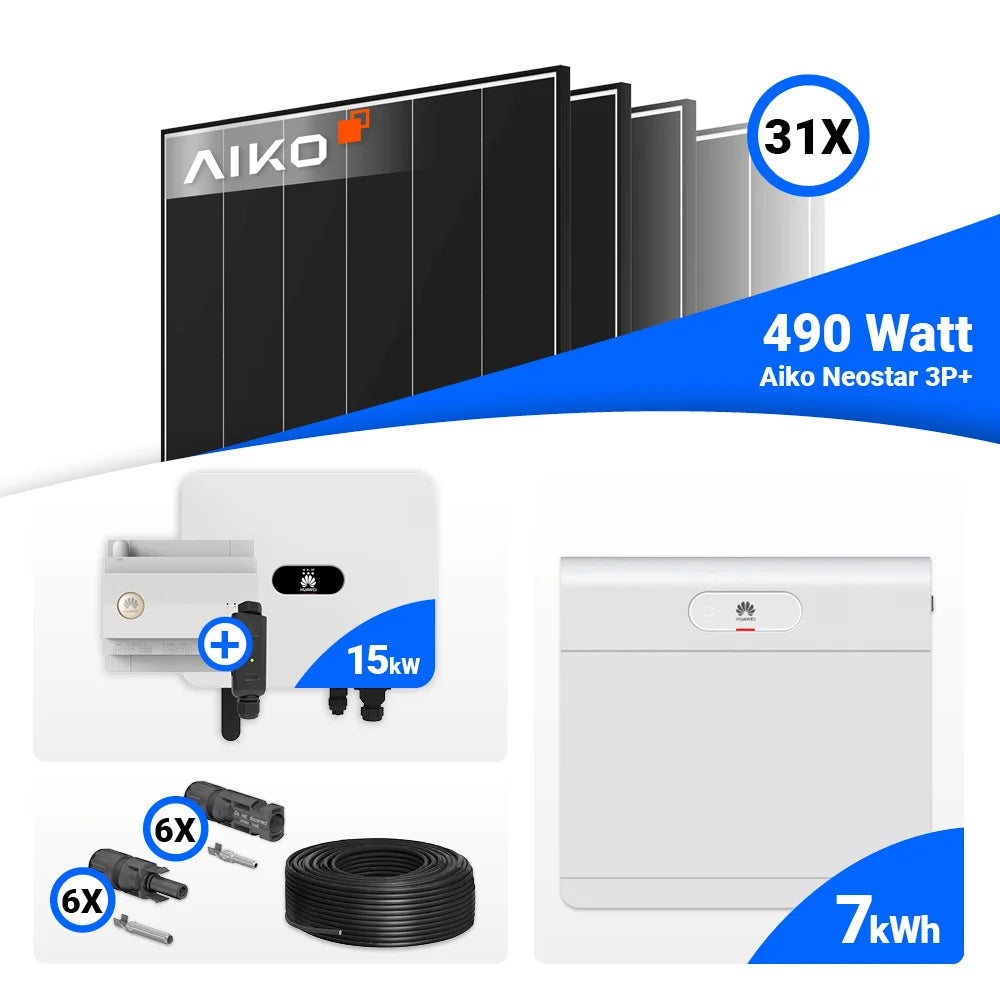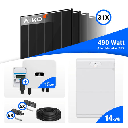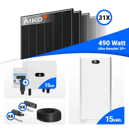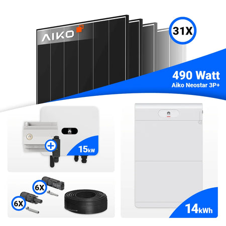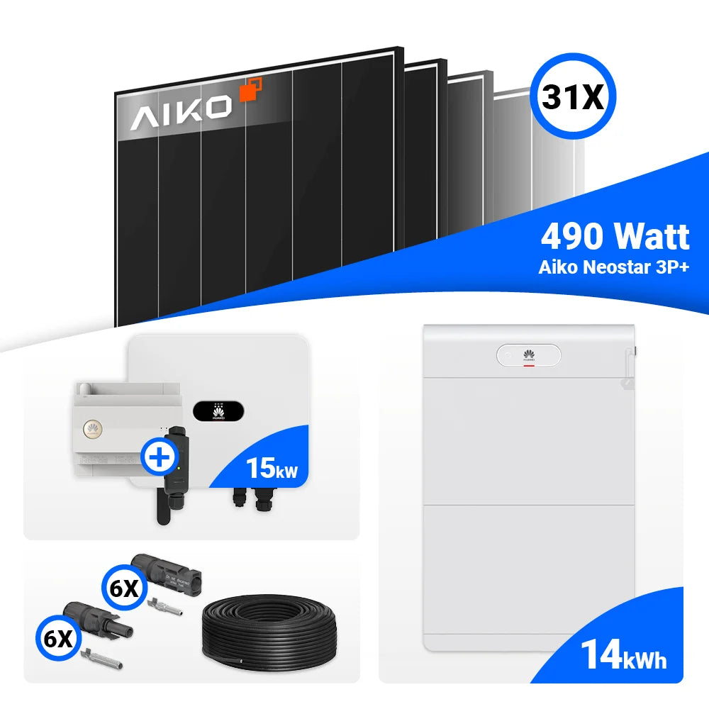 PV Komplettset 15 kWp – 31x AIKO 490W Black Frame & Huawei SUN2000-15K-MB0 mit Speicheroption