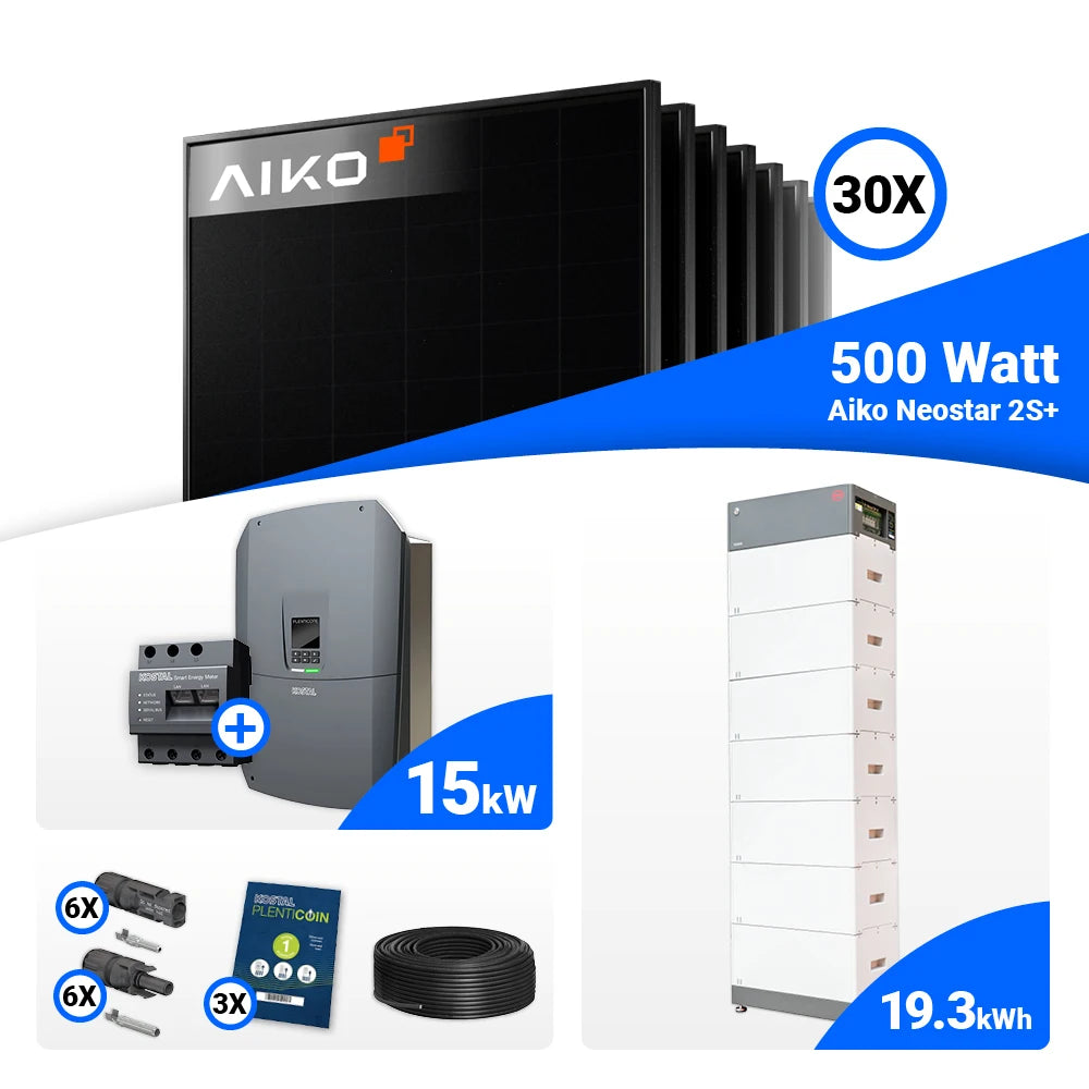 PV Komplettset 15 kWp – 30x AIKO 500W Full Black & Kostal G3 L Plenticore mit Speicheroption