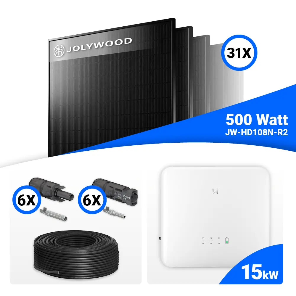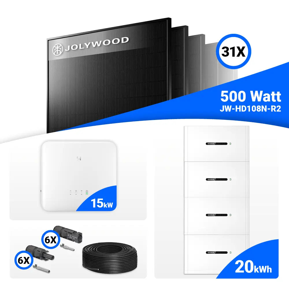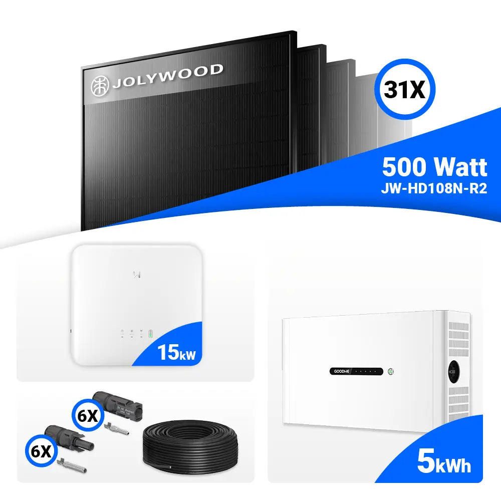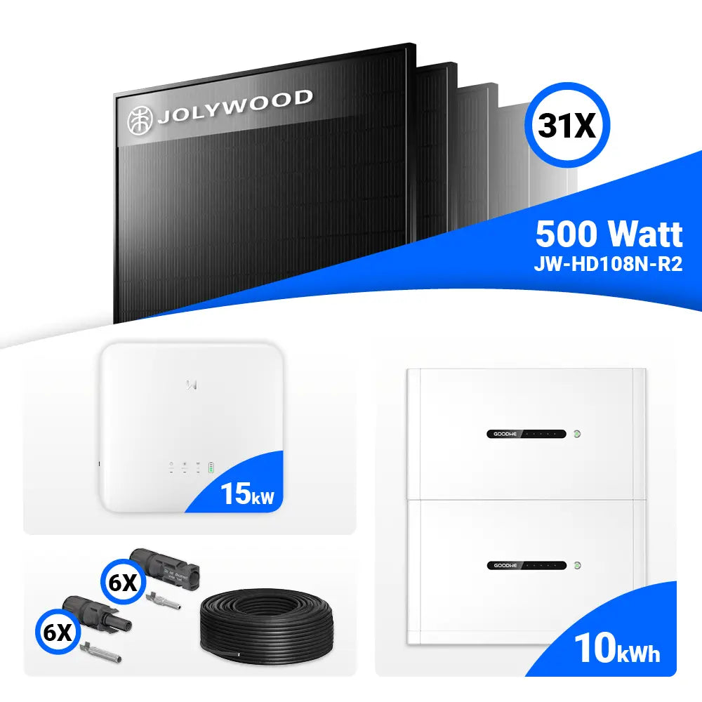 PV Komplettset 15 kWp – 30x Jolywood 500W Full Black & GoodWe GW15K-ET-20 mit Speicheroption
