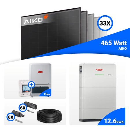 PV Komplettset 15 kWp – 33x AIKO 465W Full Black & Fronius Verto Plus 15.0 mit Speicheroption