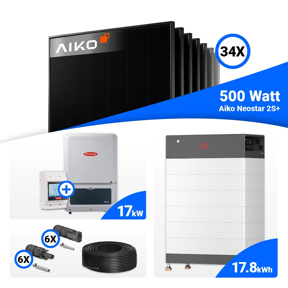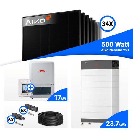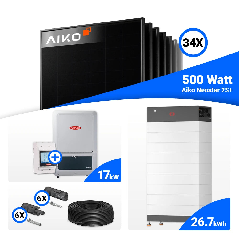 PV Komplettset 17 kWp – 34x AIKO 500W Full Black & Fronius Verto Plus 17.5 mit Speicheroption