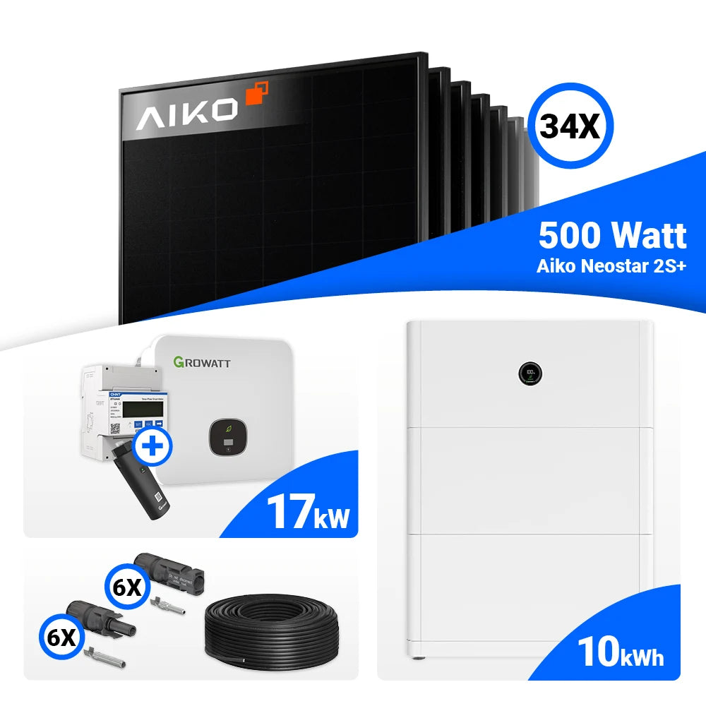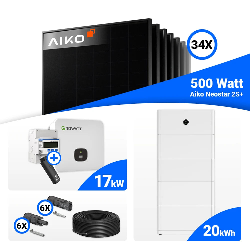 PV Komplettset 17kWp – 34x AIKO 500W Full Black & Growatt MID17KTL3-XH mit Speicheroption