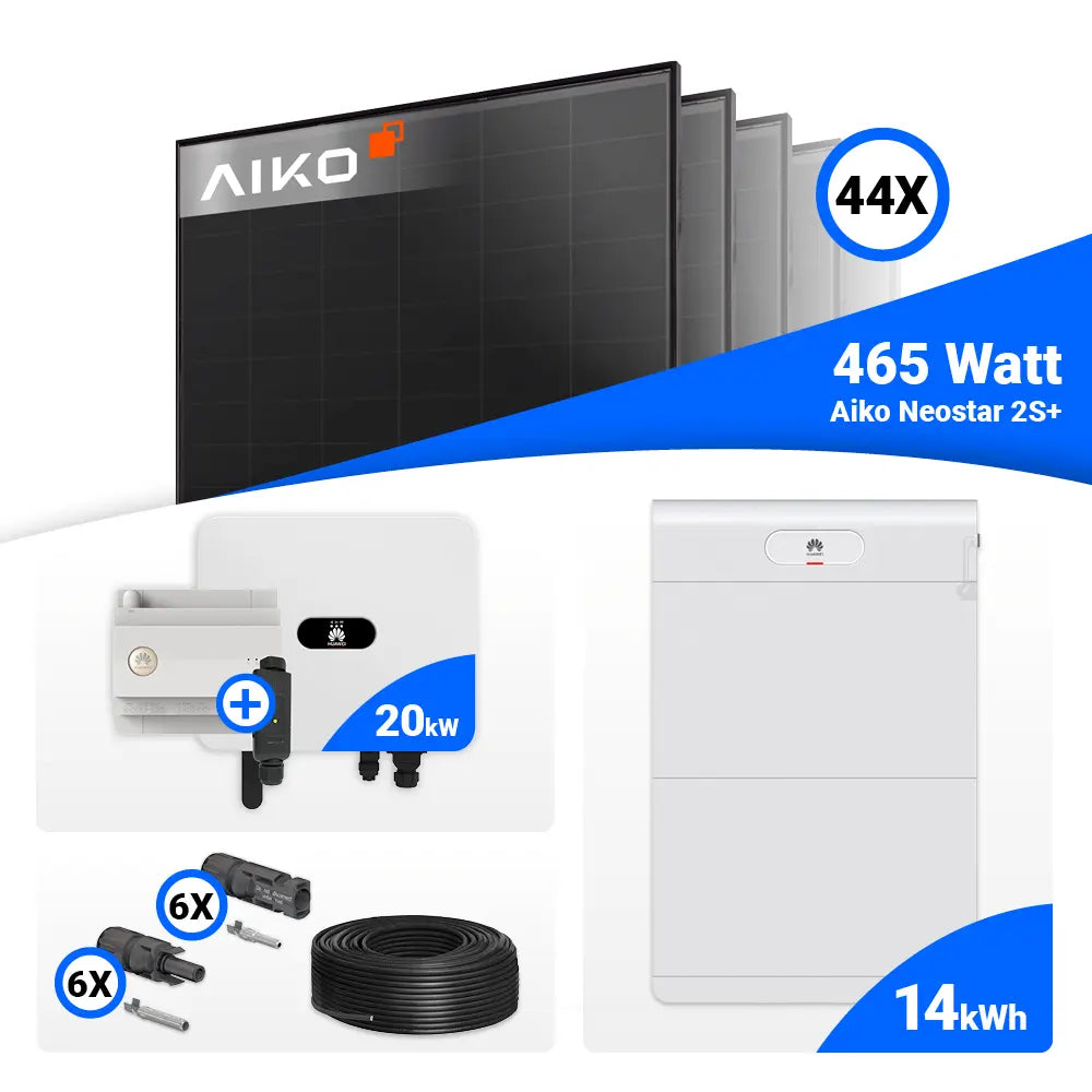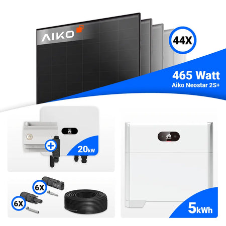 PV Komplettset 20 kWp – 44x AIKO 465W Full Black & Huawei SUN2000-20K-MB0 mit Speicheroption