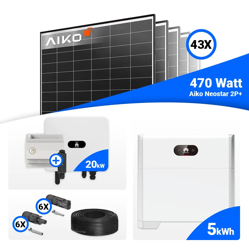 PV Komplettset 20 kWp – 43x AIKO 470W Black Frame & Huawei SUN2000-20K-MB0 mit Speicheroption