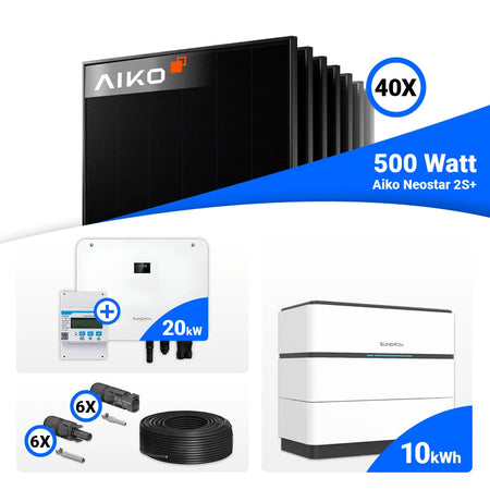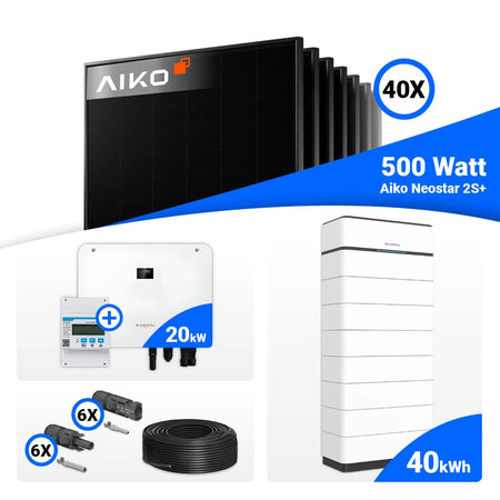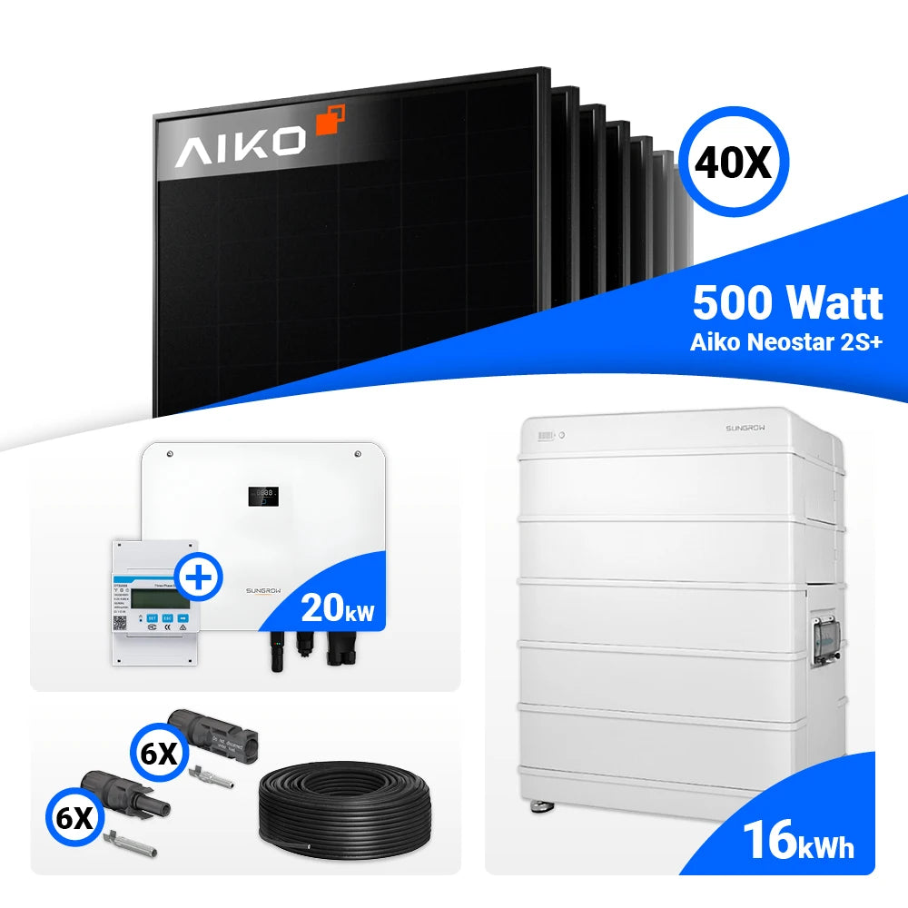 PV Komplettset 20 kWp – 40x AIKO 500W Full Black & Sungrow Hybrid SH20T mit Speicheroption