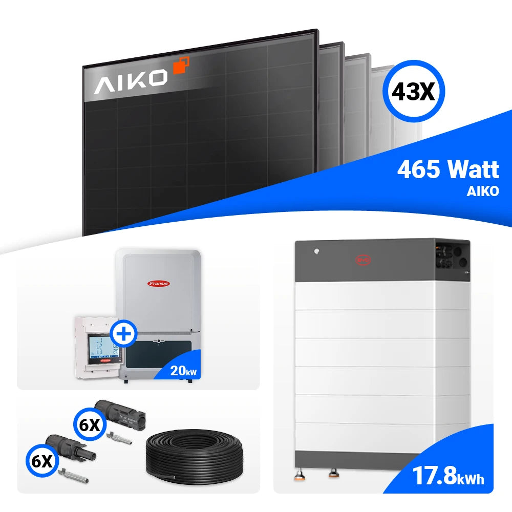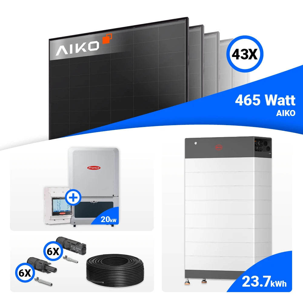 PV Komplettset 20 kWp – 43x AIKO 465W Full Black & Fronius Verto Plus 20.0 mit Speicheroption