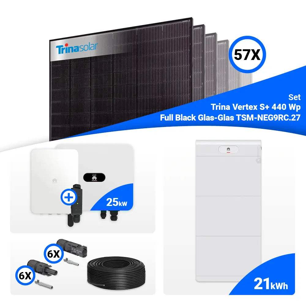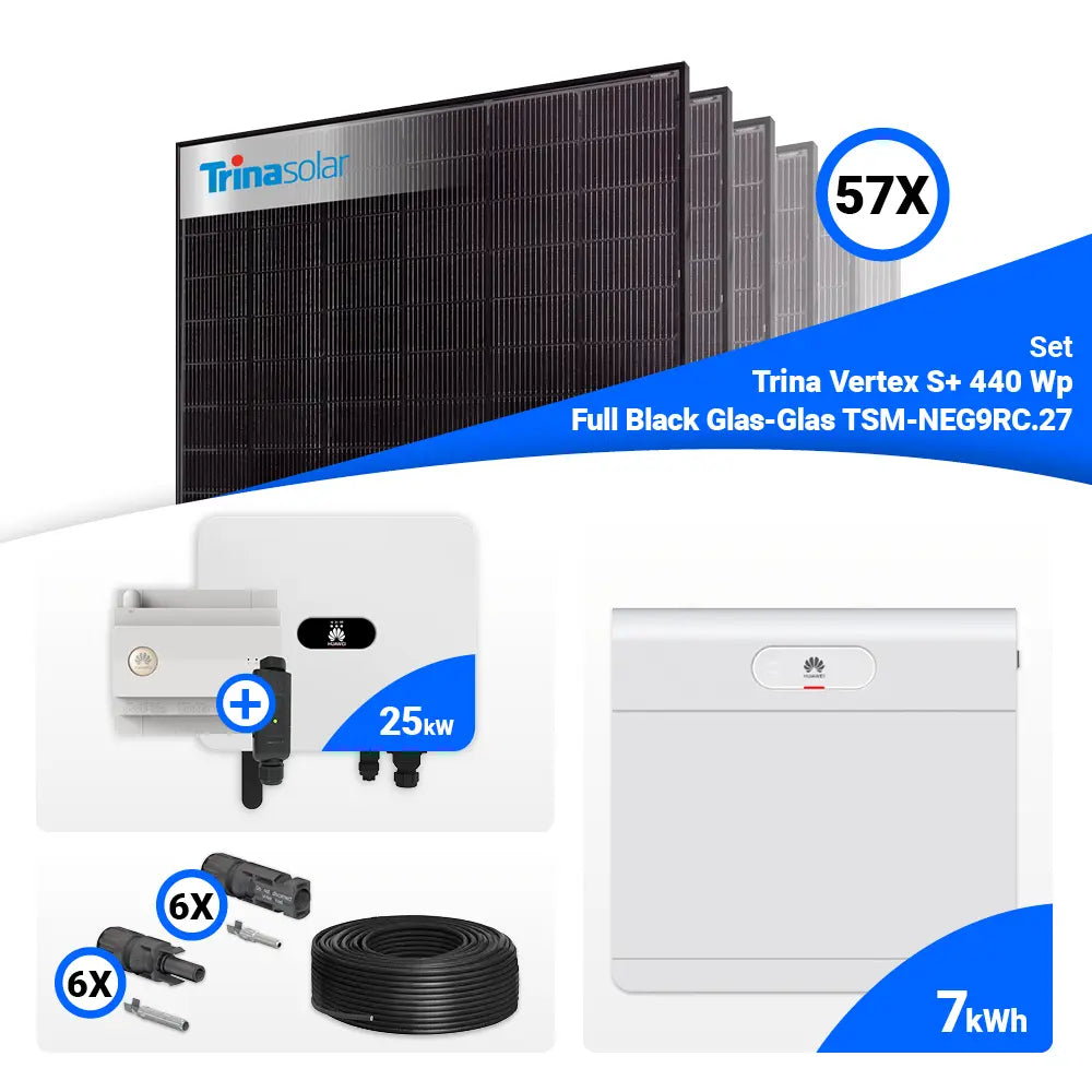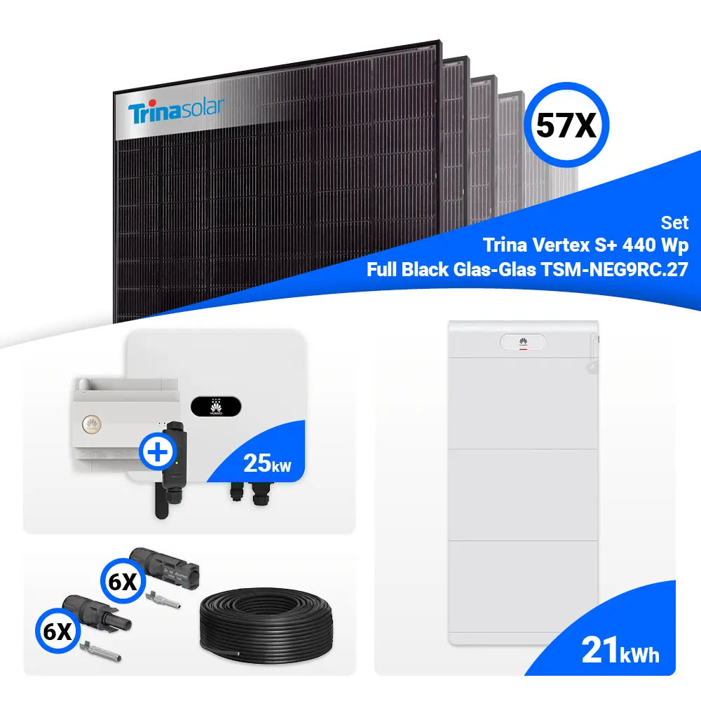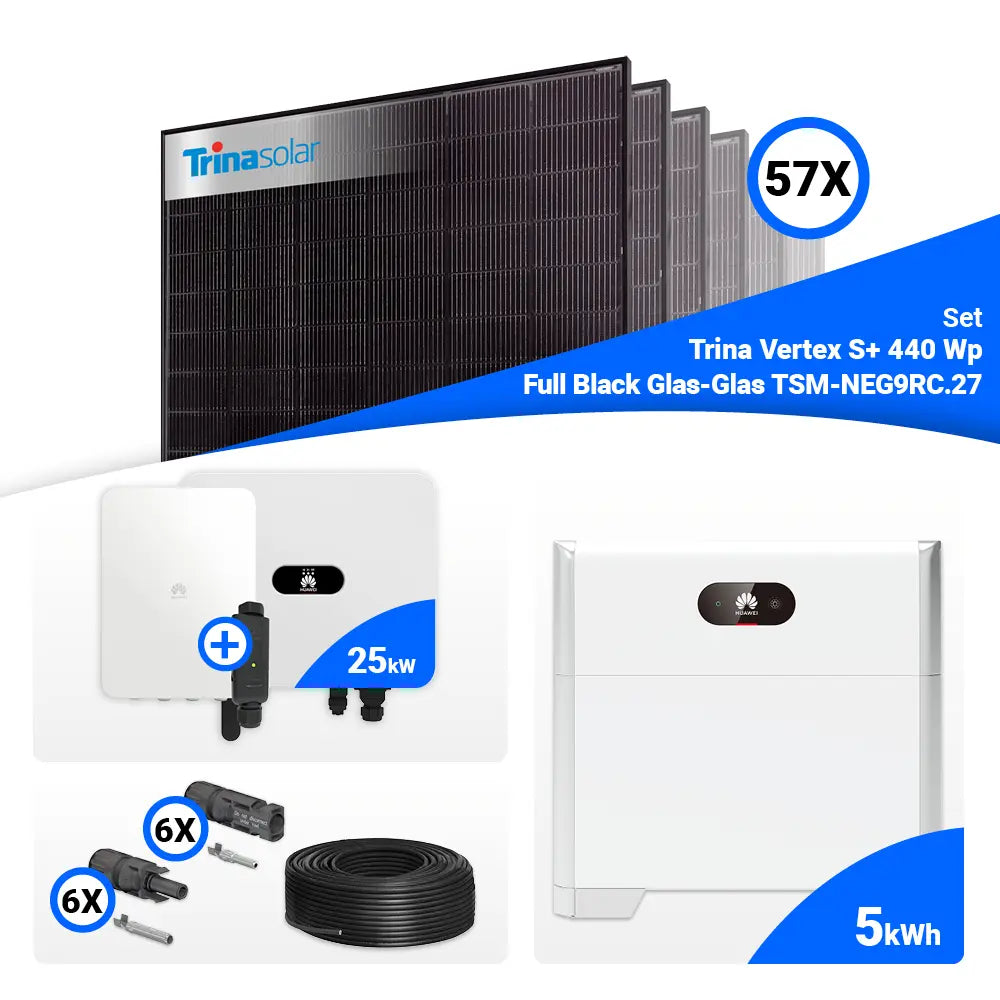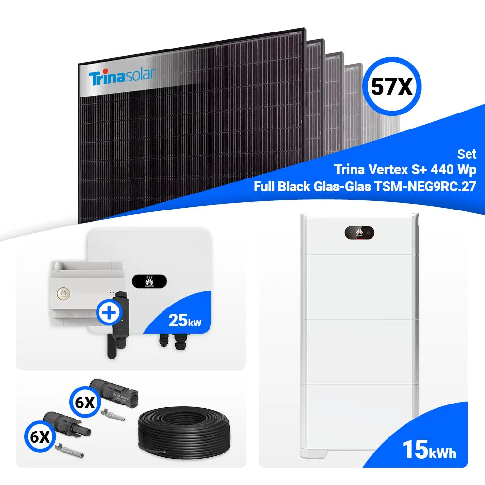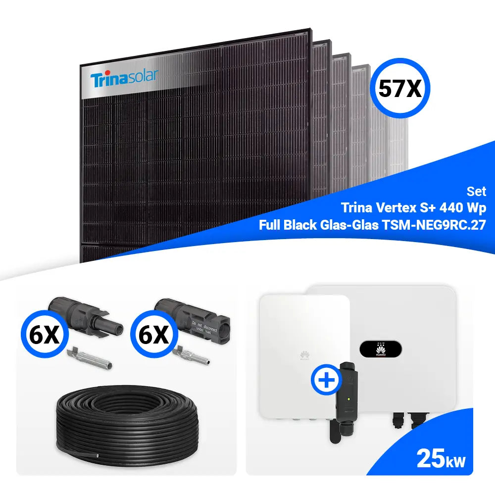 PV Komplettset 25 kWp – 57x Trina 440W Full Black Bifazial & Huawei SUN2000-25K-MB0 mit Speicheroption