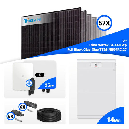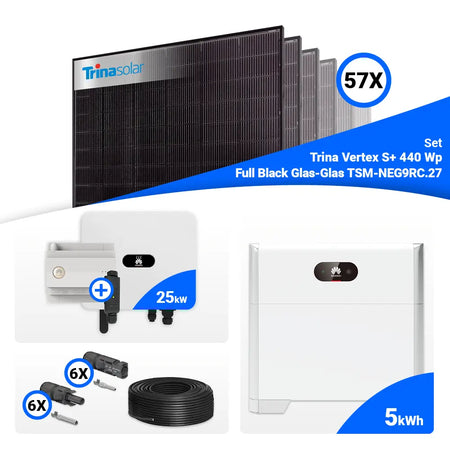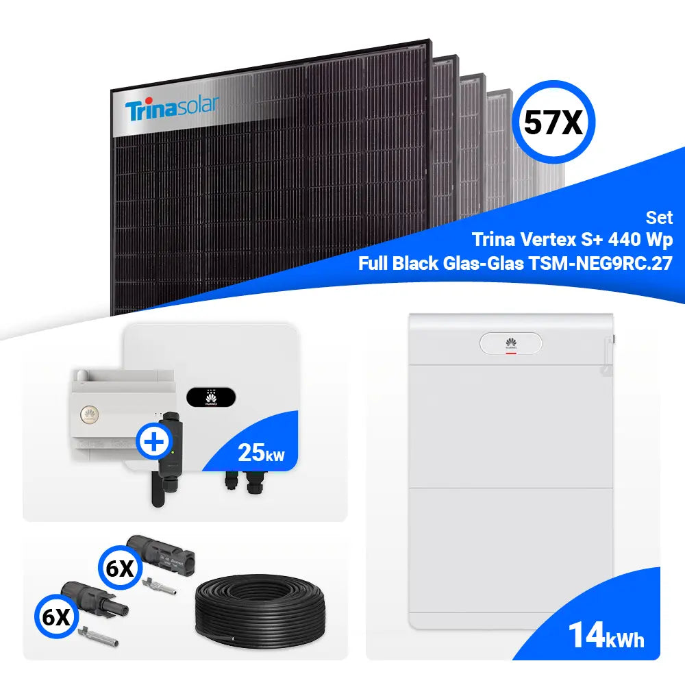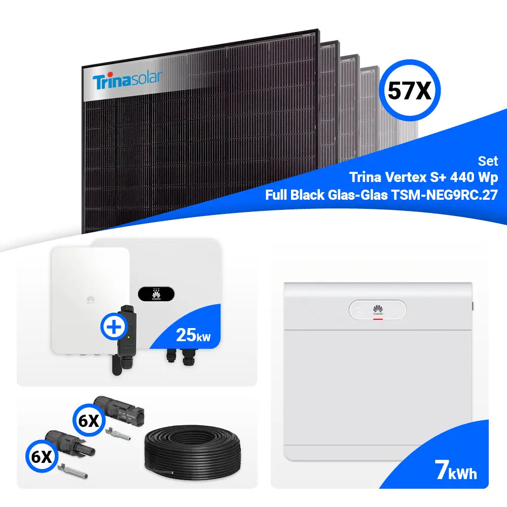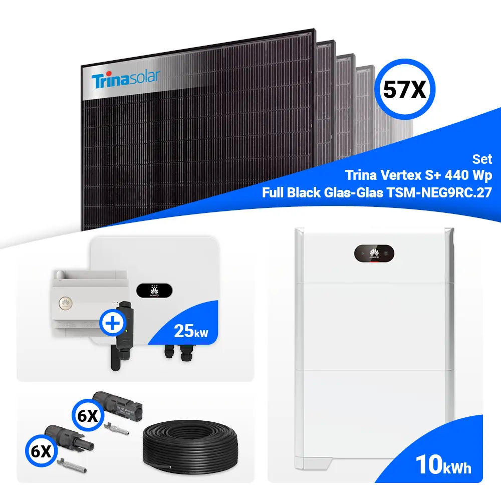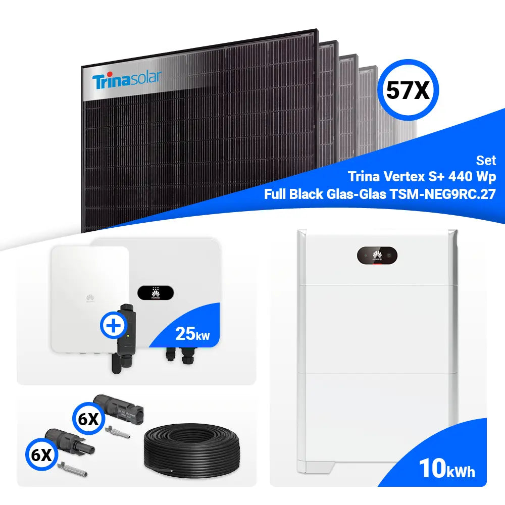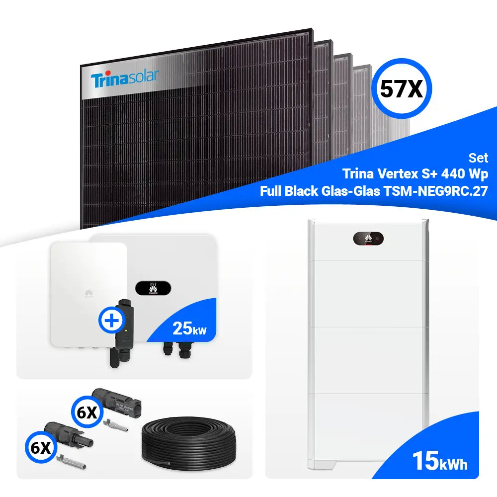 PV Komplettset 25 kWp – 57x Trina 440W Full Black Bifazial & Huawei SUN2000-25K-MB0 mit Speicheroption