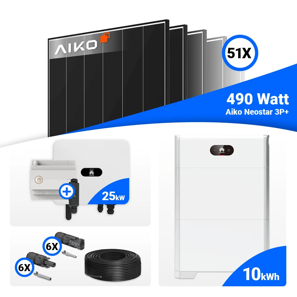 PV Komplettset 25 kWp – 51x AIKO 490W Black Frame & Huawei SUN2000-25K-MB0 mit Speicheroption