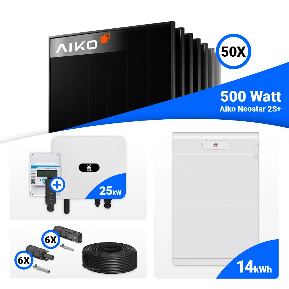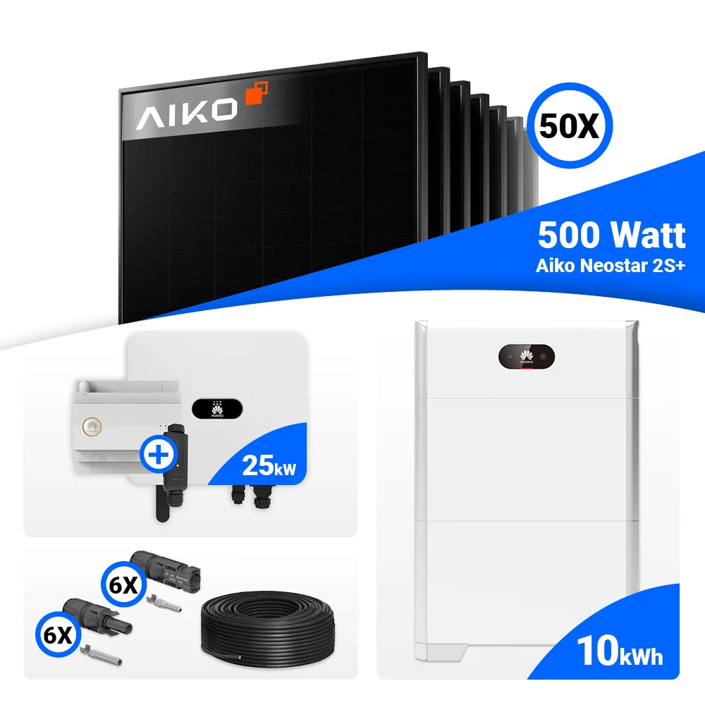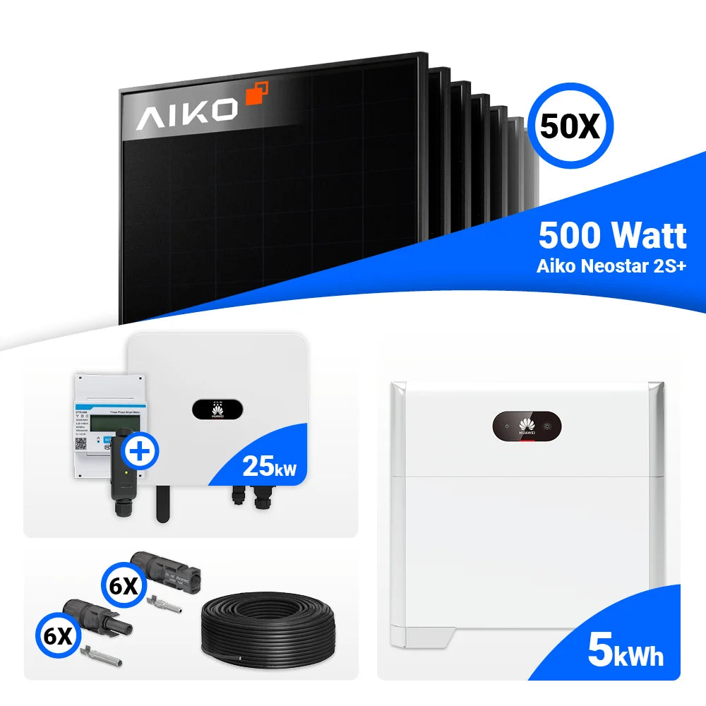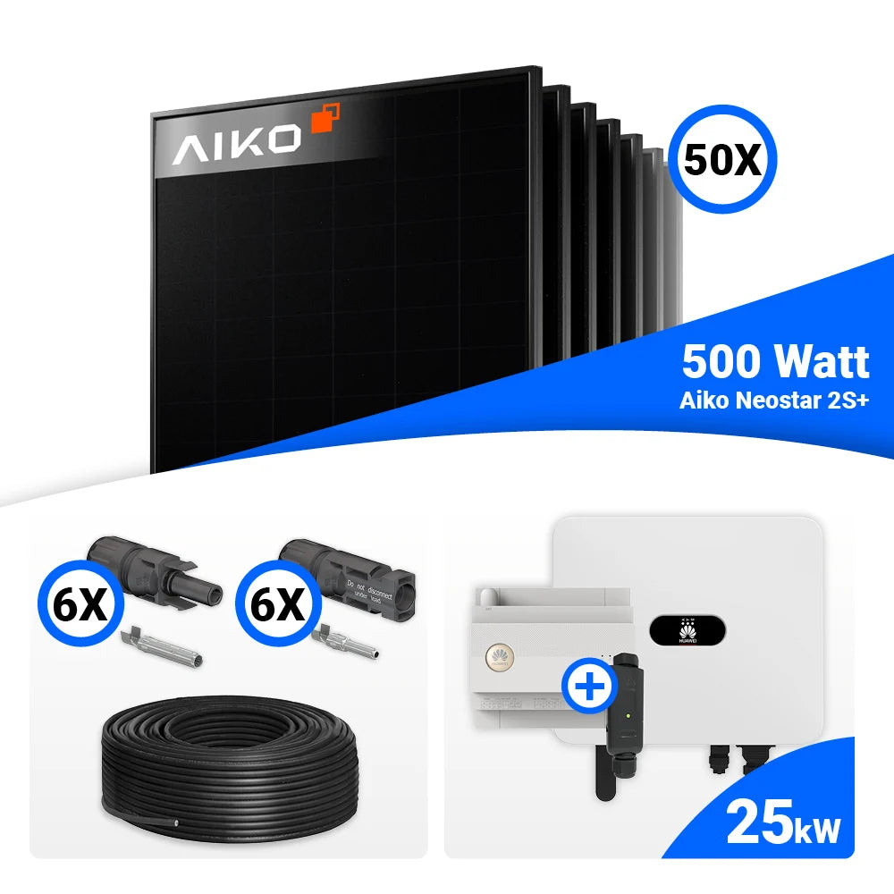PV Komplettset 25 kWp – 50x AIKO 500W Full Black & Huawei SUN2000-25K-MB0 mit Speicheroption