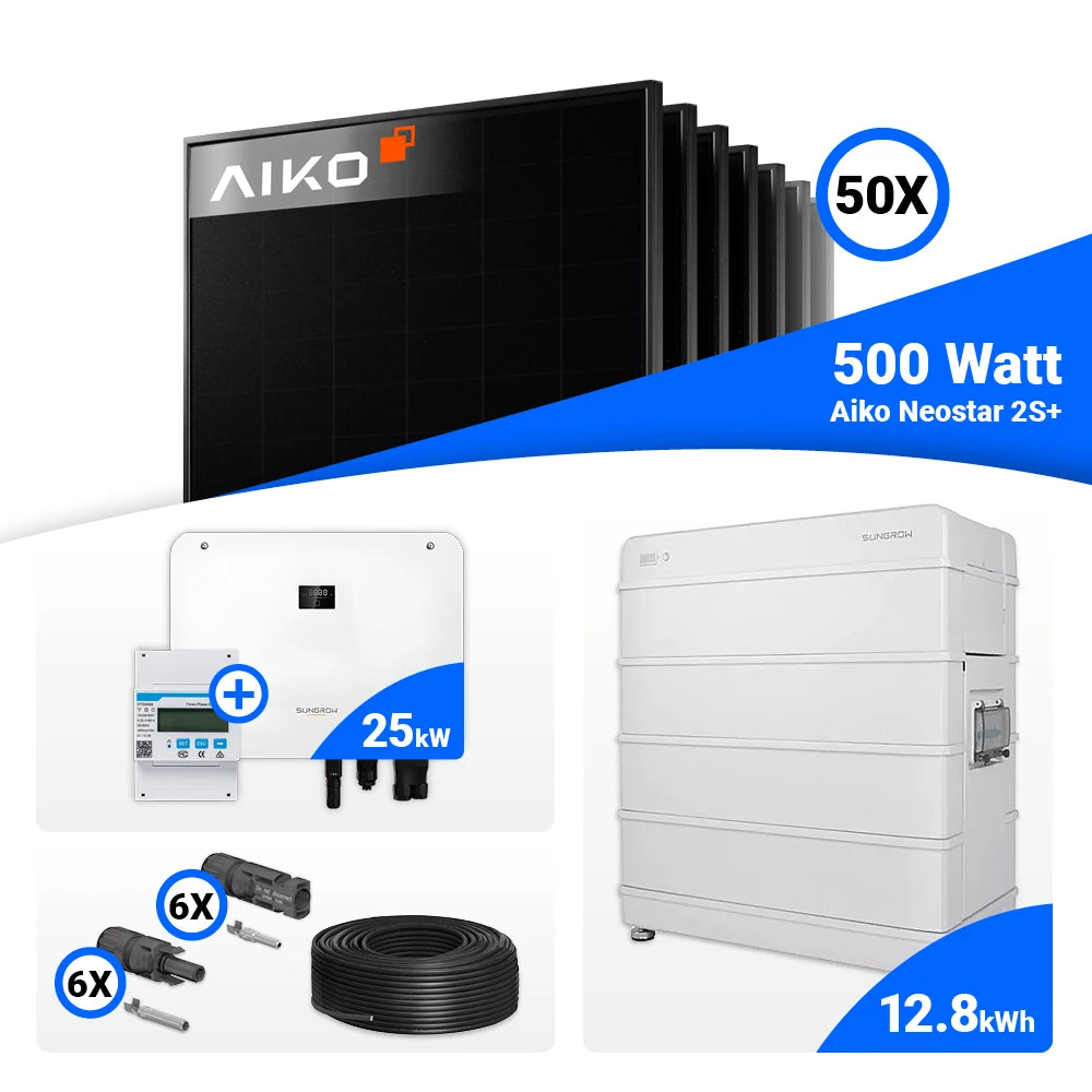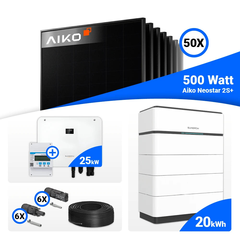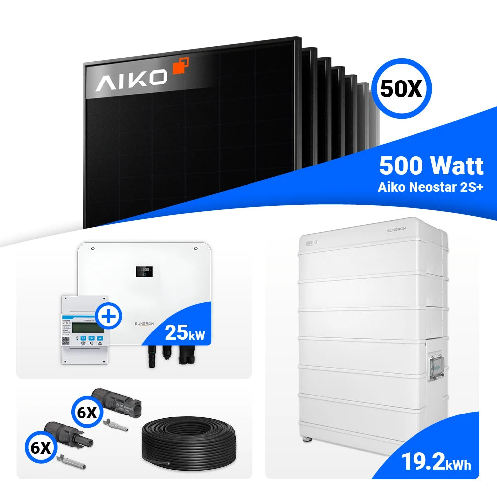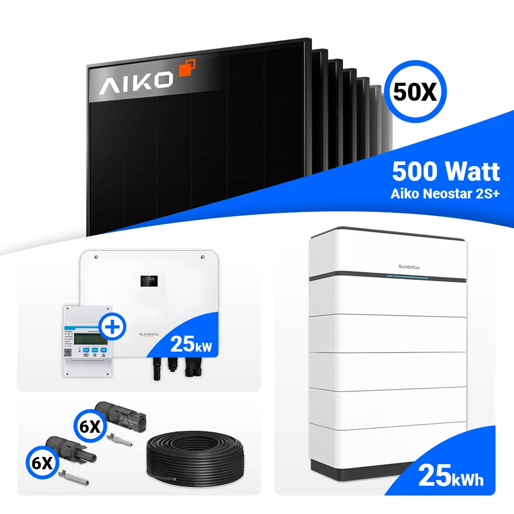 PV Komplettset 25 kWp –50x AIKO 500W Full Black & Sungrow Hybrid SH25T mit Speicheroption