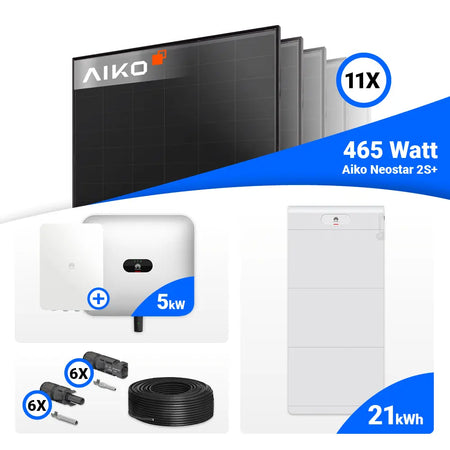 PV Komplettset 5 kWp – 11x AIKO 465W Full Black & Huawei SUN2000-5KTL-M1 mit Speicheroption