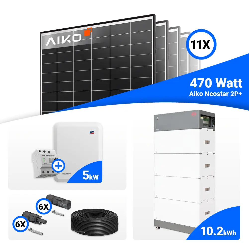 PV Komplettset 5 kWp – 11x AIKO 470W Black Frame & SMA STP5.0-3SE-40 mit Speicheroption