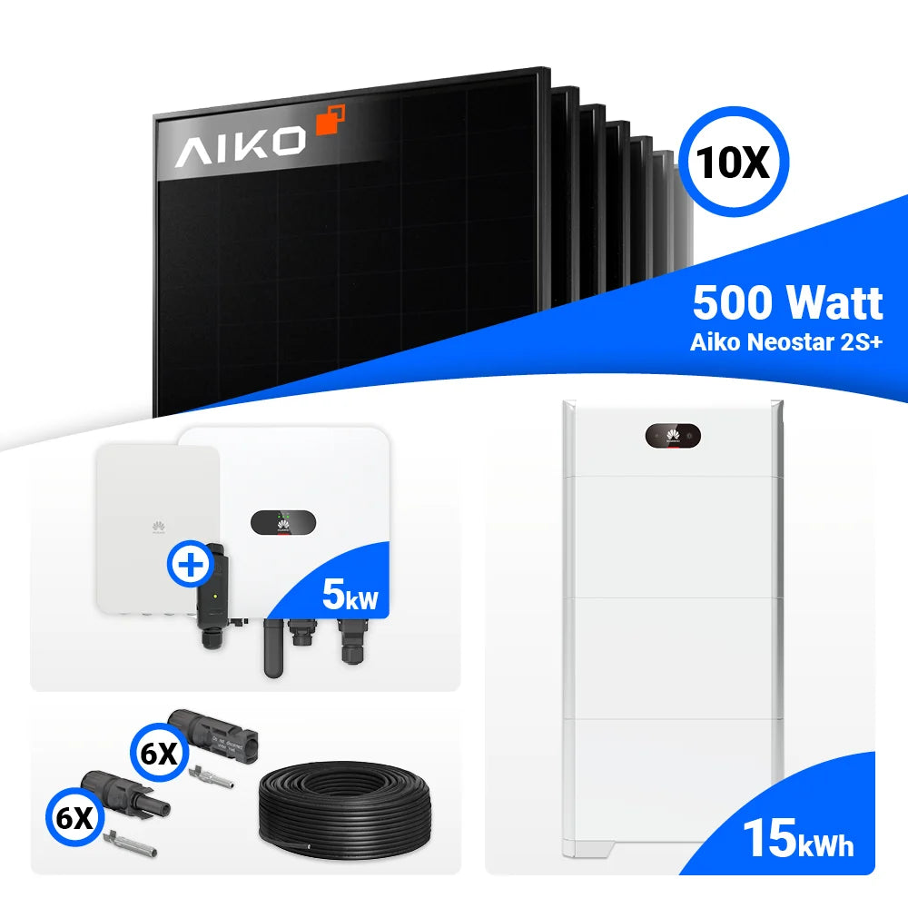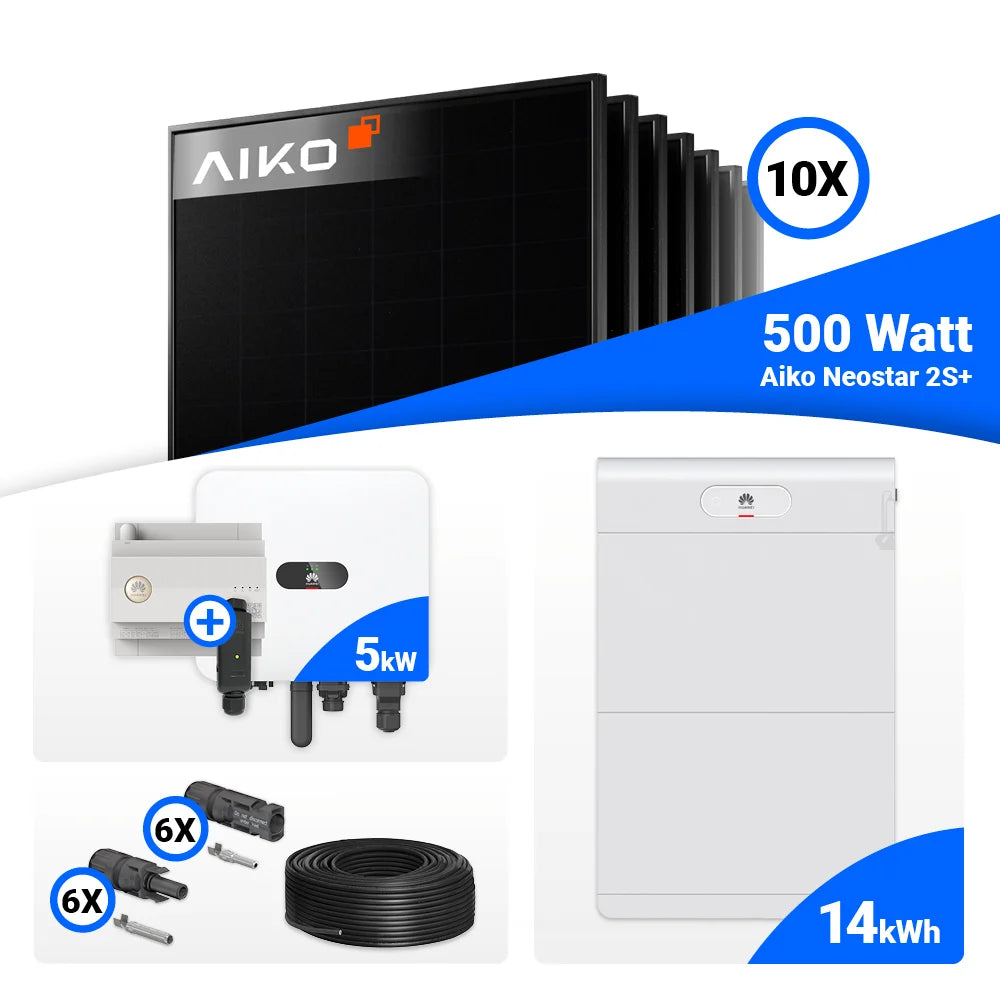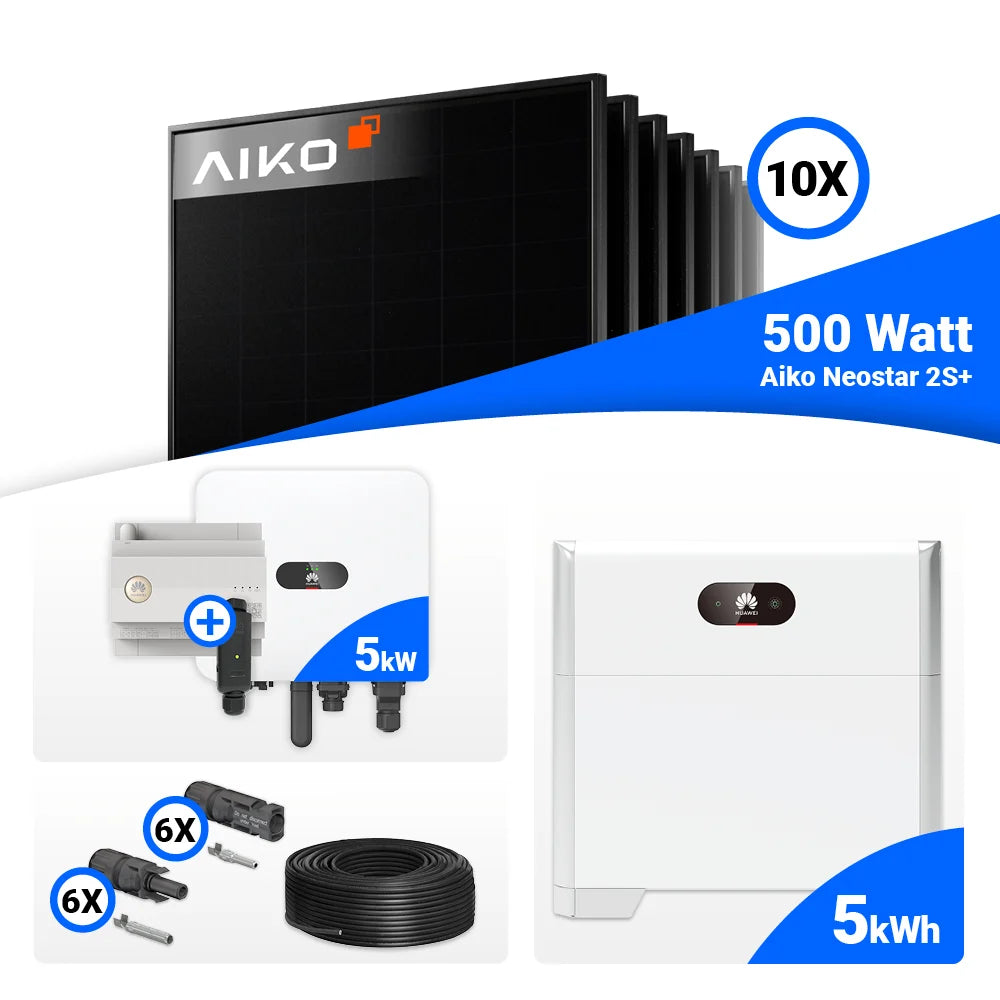 PV Komplettset 5 kWp – 10x AIKO 500W Full Black & Huawei MAP0 mit Speicheroption