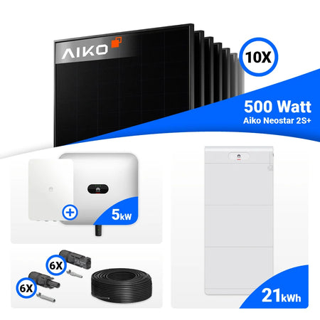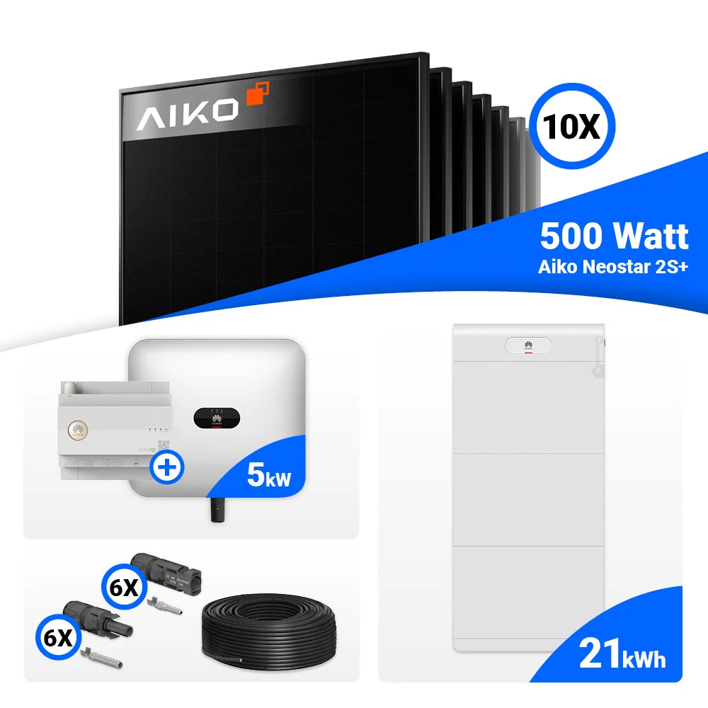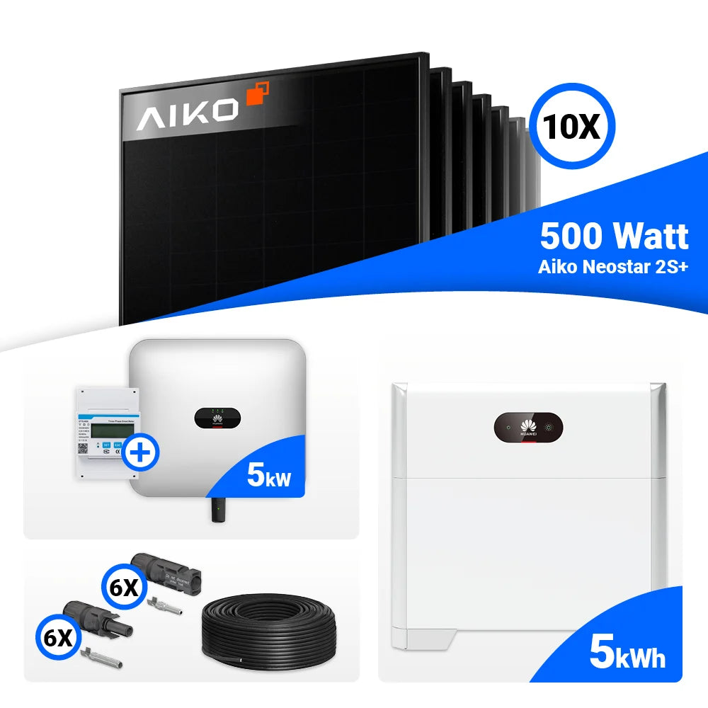 PV Komplettset 5 kWp – 10x AIKO 500W Full Black & Huawei SUN2000-5KTL-M1 mit Speicheroption