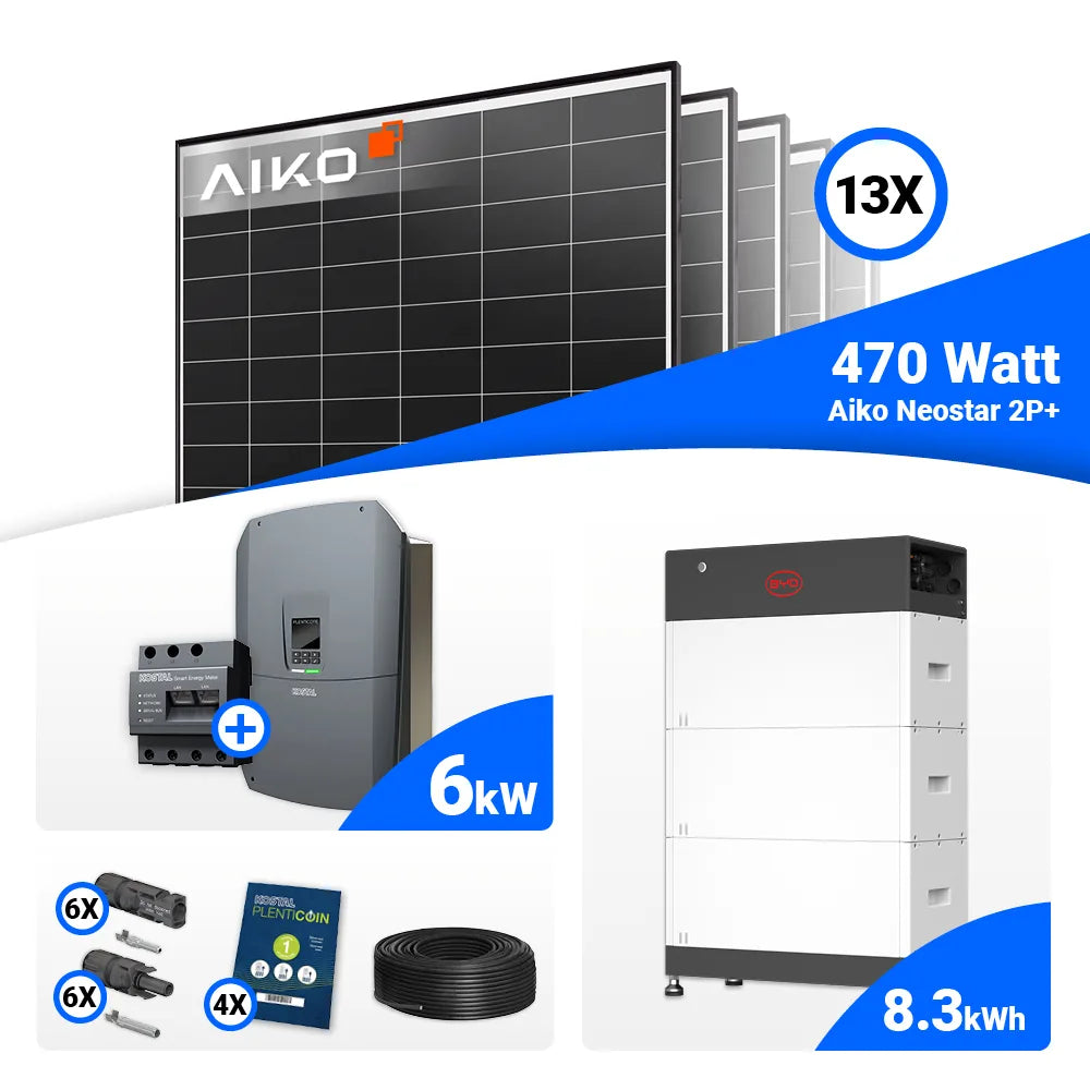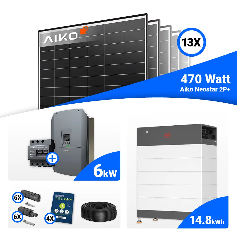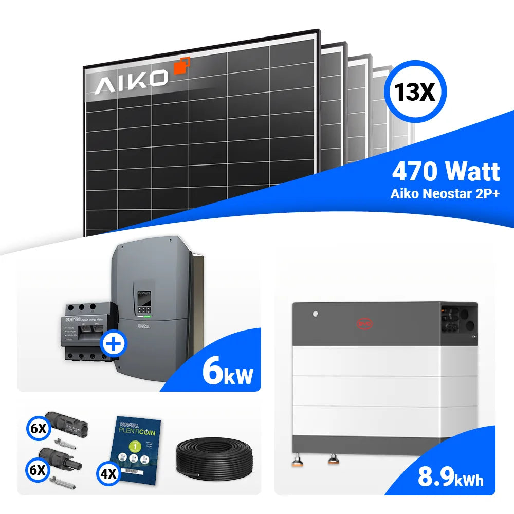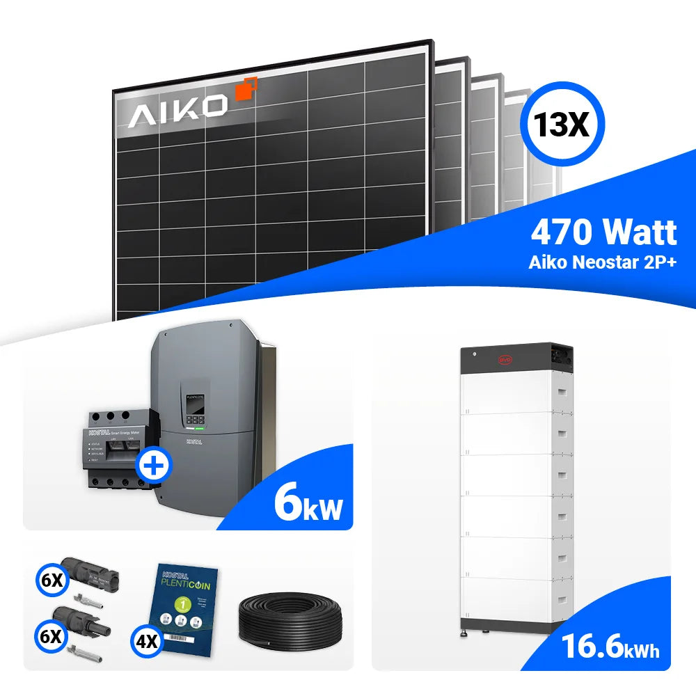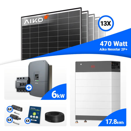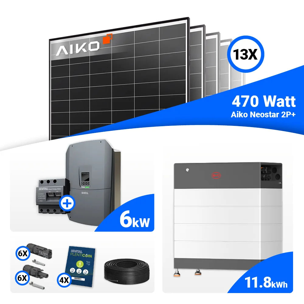 PV Komplettset 6 kWp – 13x AIKO 470W Black Frame & Kostal G3 S Plenticore mit Speicheroption