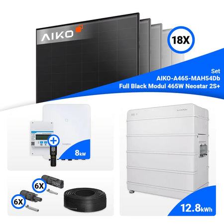 PV Komplettset 8 kWp – 18x AIKO 465W Full Black & Sungrow SH8.0RT mit Speicheroption