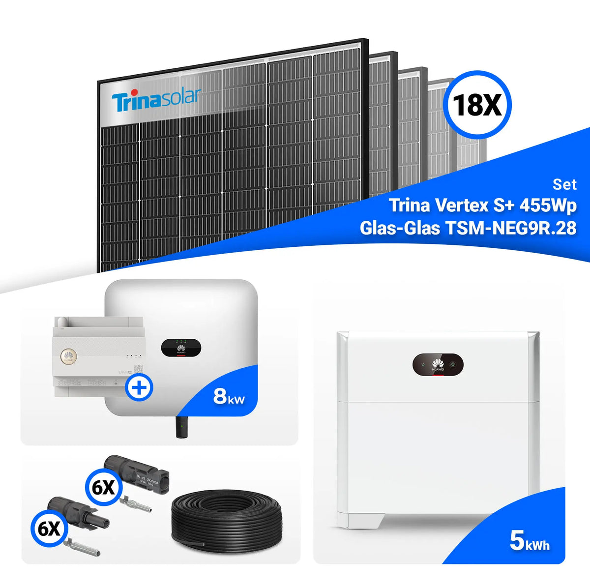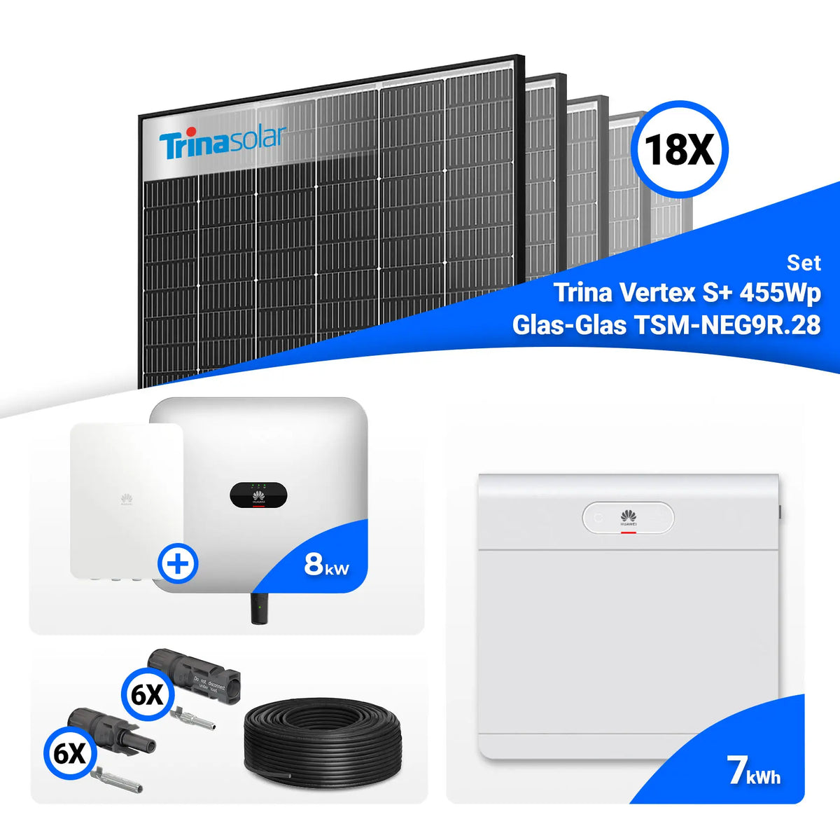PV Komplettset 8 kWp – 18x Trina 455W Black Frame & Huawei SUN2000-8KTL-M1 mit Speicheroption