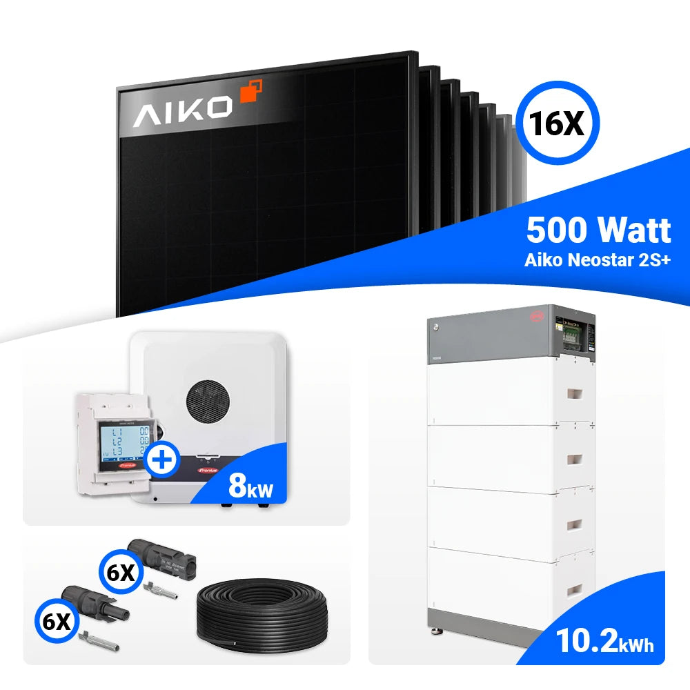 PV Komplettset 8 kWp – 16x AIKO 500W Full Black & Fronius SYMO-GEN24 8.0 mit Speicheroption